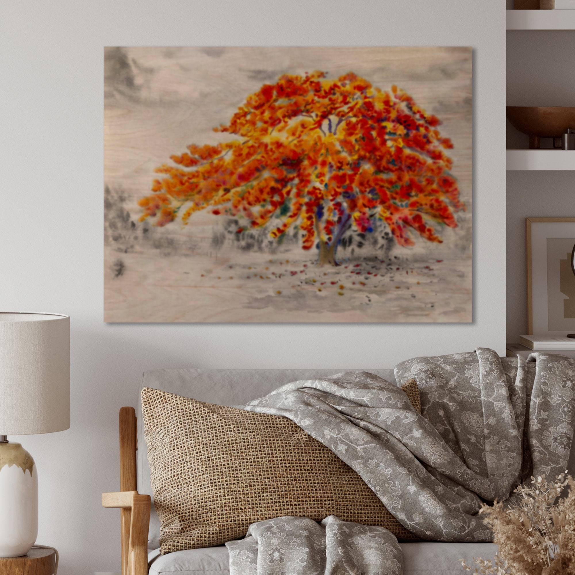 Designart 'Colorfull Blooming Red Autumn Tree' Traditional Wood Wall Art Décor - Natural Pine Wood