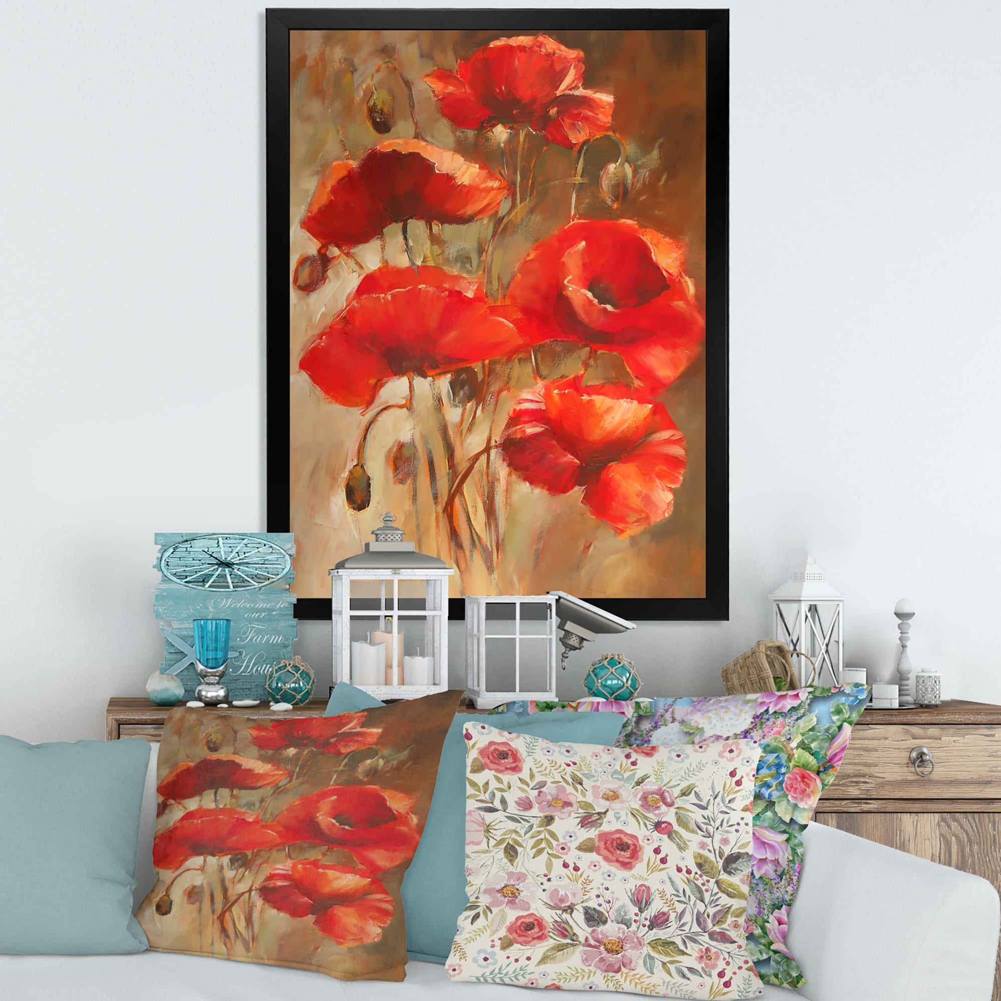Designart "Red Blossoming Poppies VI" Traditional Framed Art Print