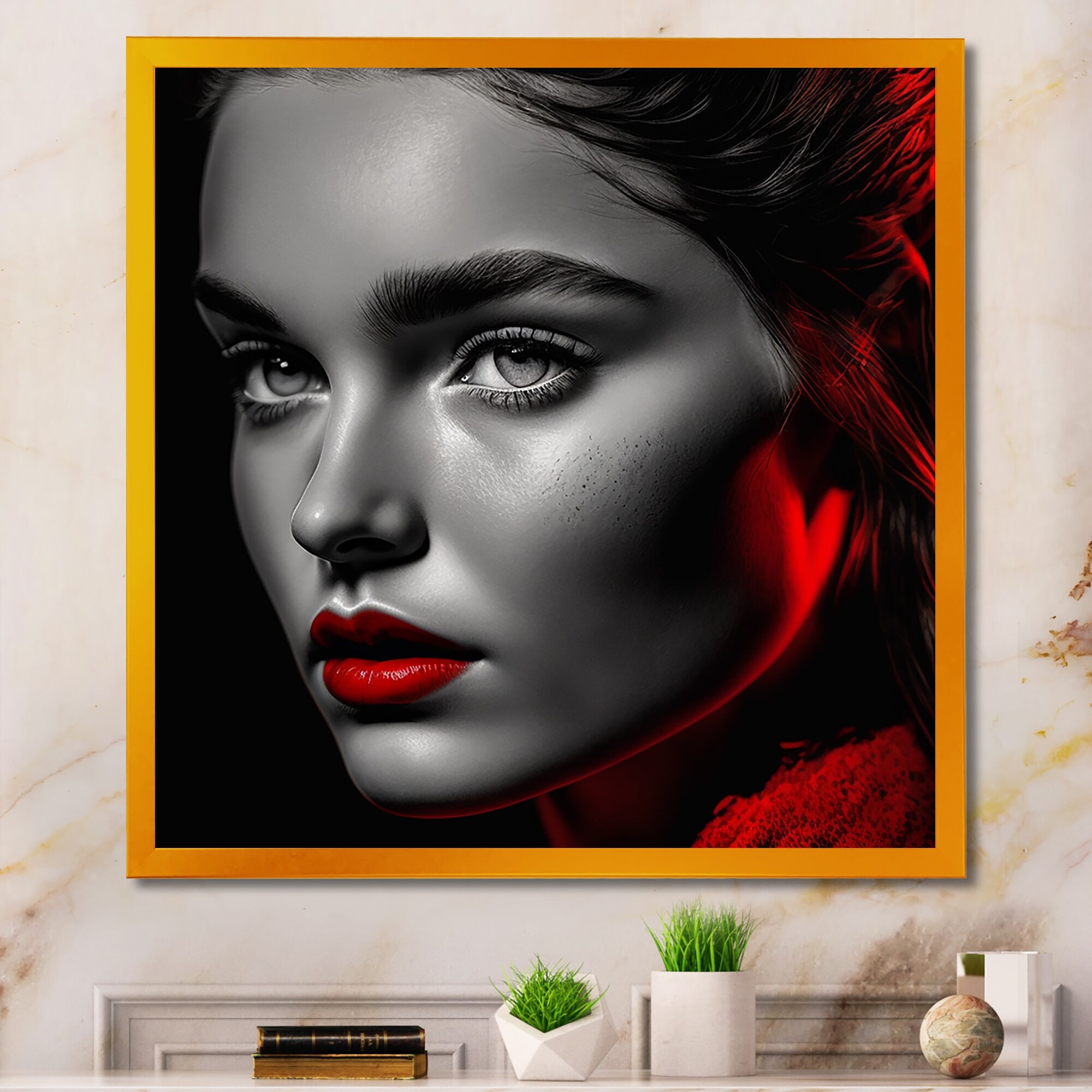 Designart "Vintage Elegance in Black And Red III" Fashion Woman Framed Art Print