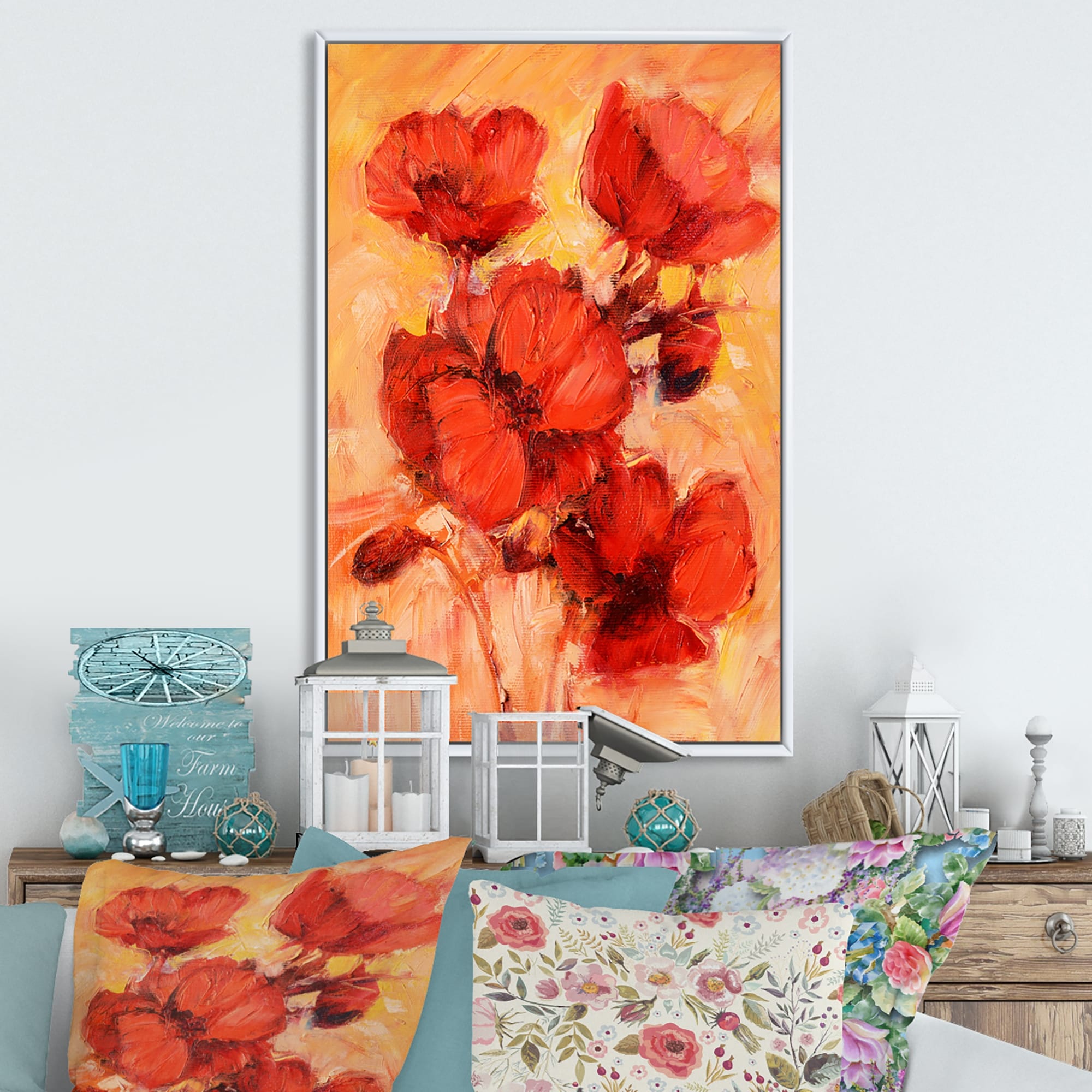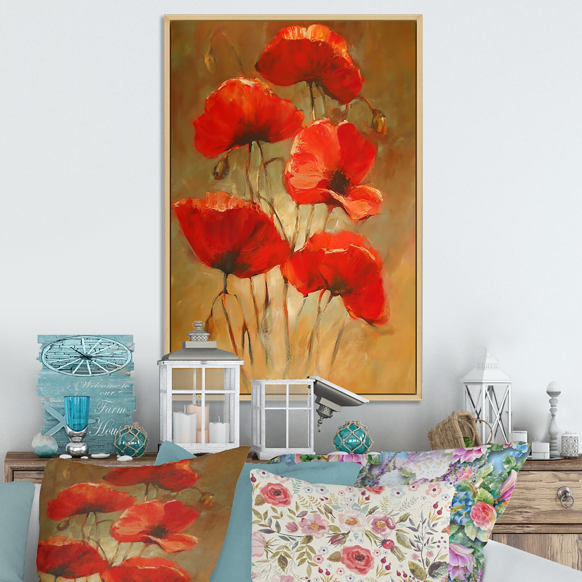 Designart "Red Blooming Poppies VI" Traditional Framed Canvas artwork