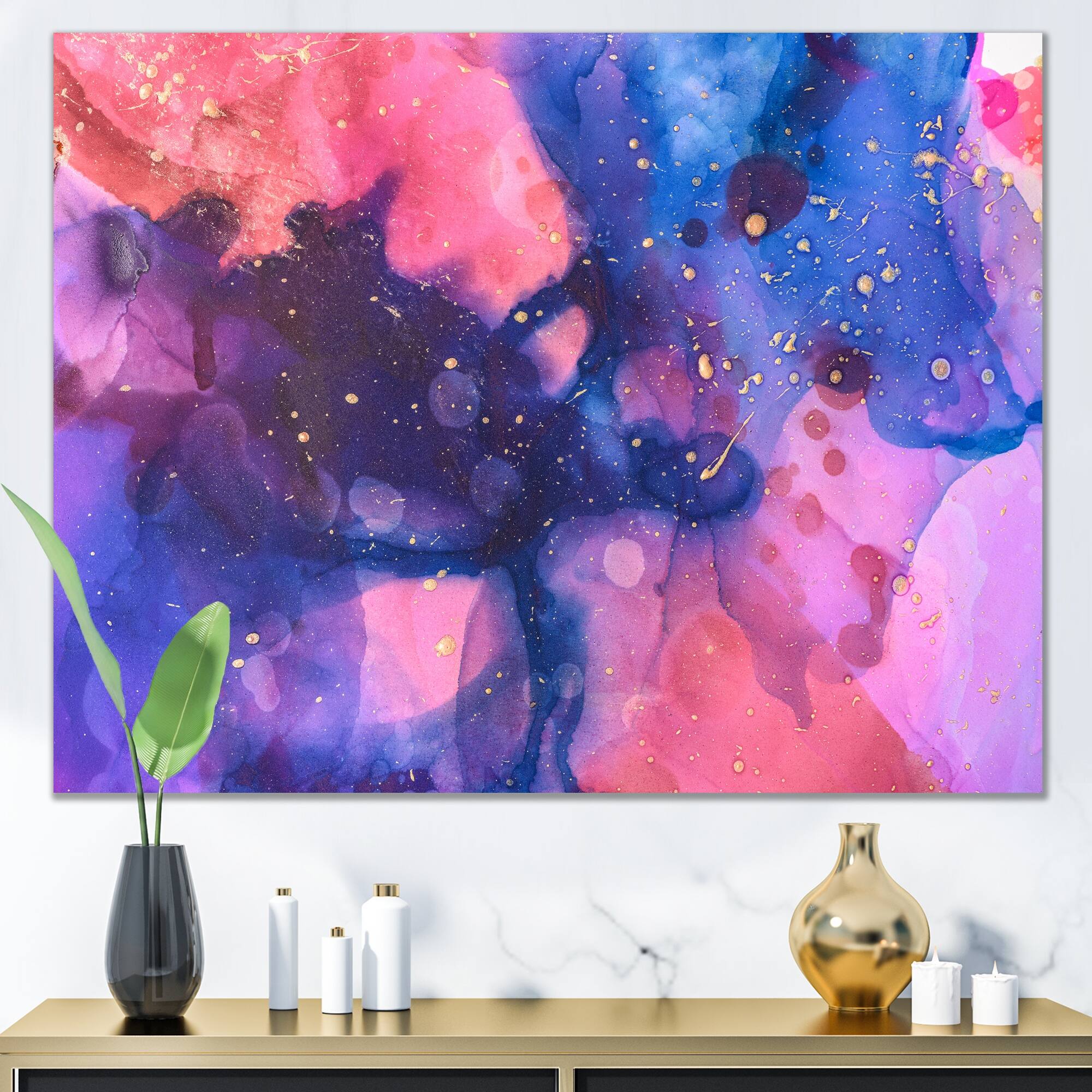 Designart "Abstract Blue Red Violet Splashes" Abstract Canvas Wall Decor