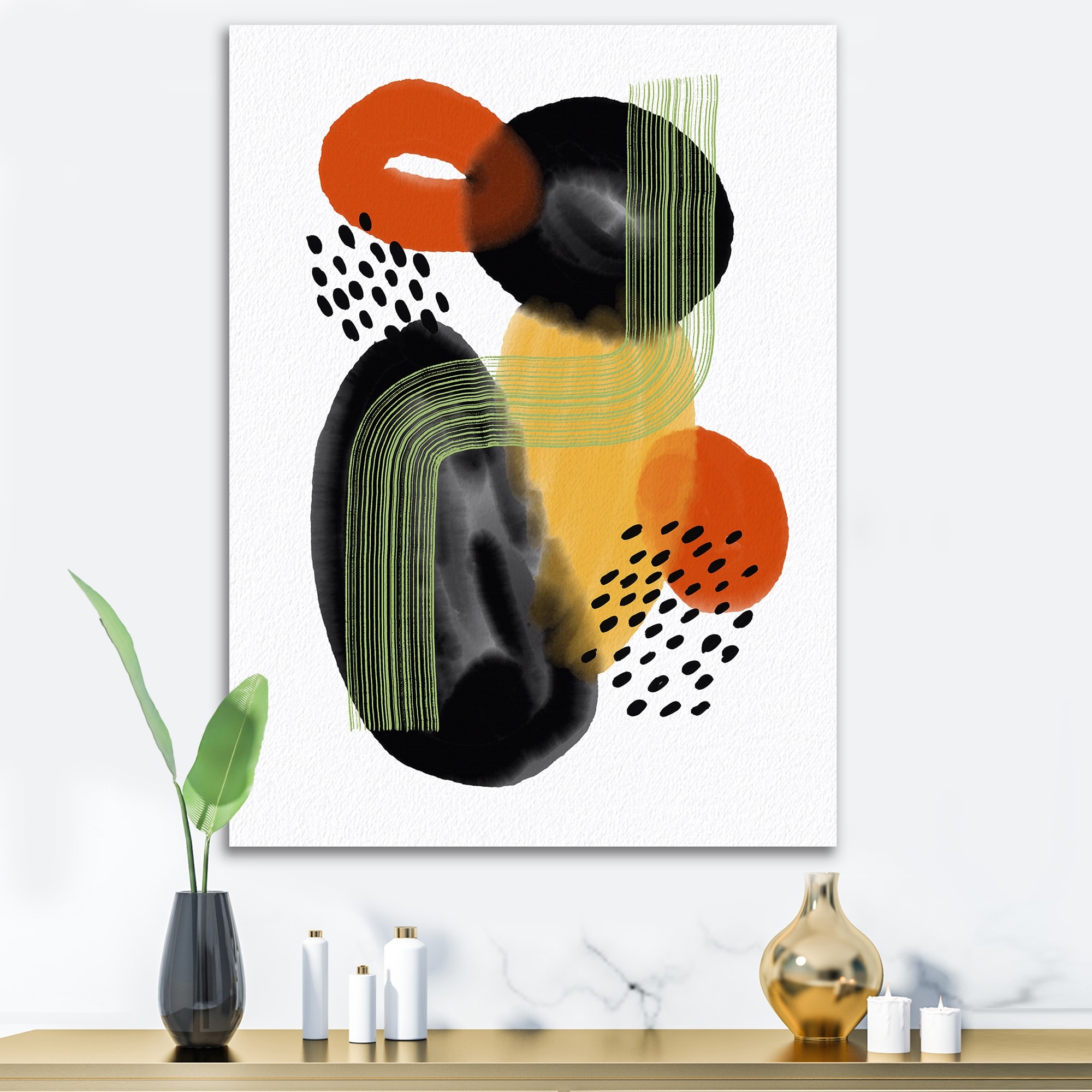 Designart "Black And Red Abstract With Black Polka Dots" Modern Canvas Wall Art Print
