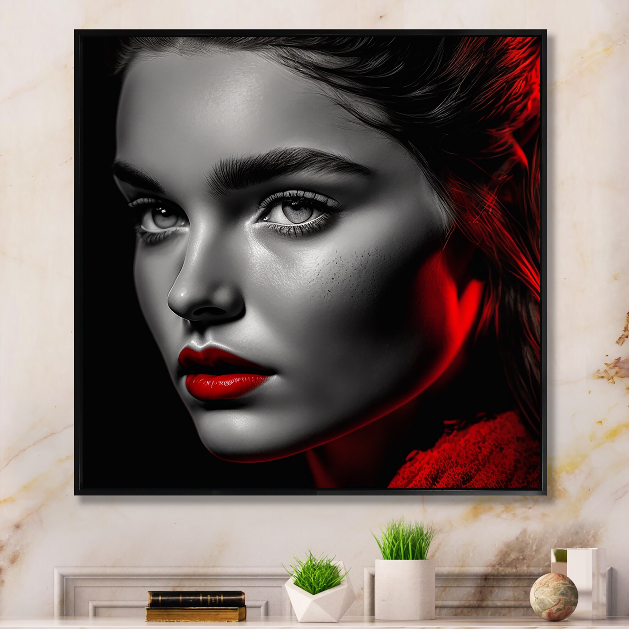 Designart "Vintage Elegance in Black And Red III" Fashion Woman Framed Canvas Wall Art Print