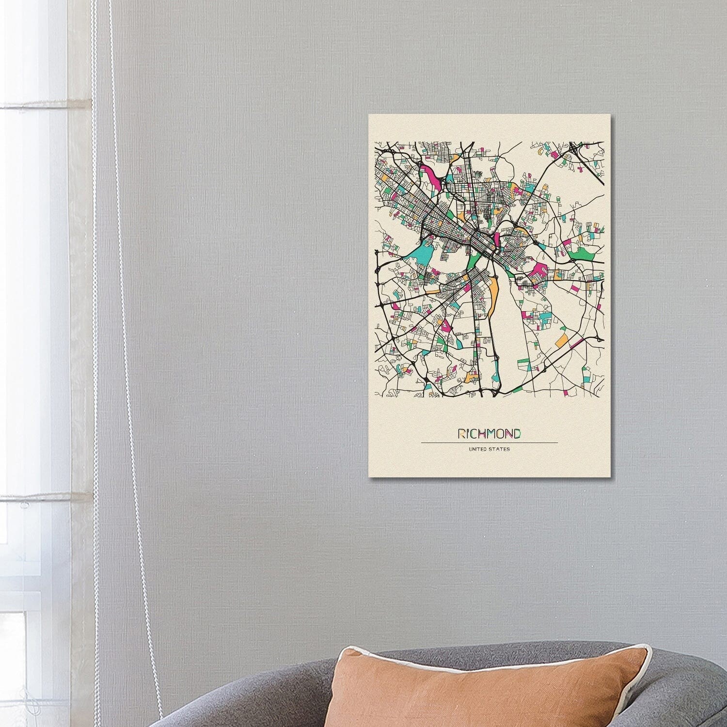 iCanvas "Richmond, Virginia Map" by Ayse Deniz Akerman Canvas Print
