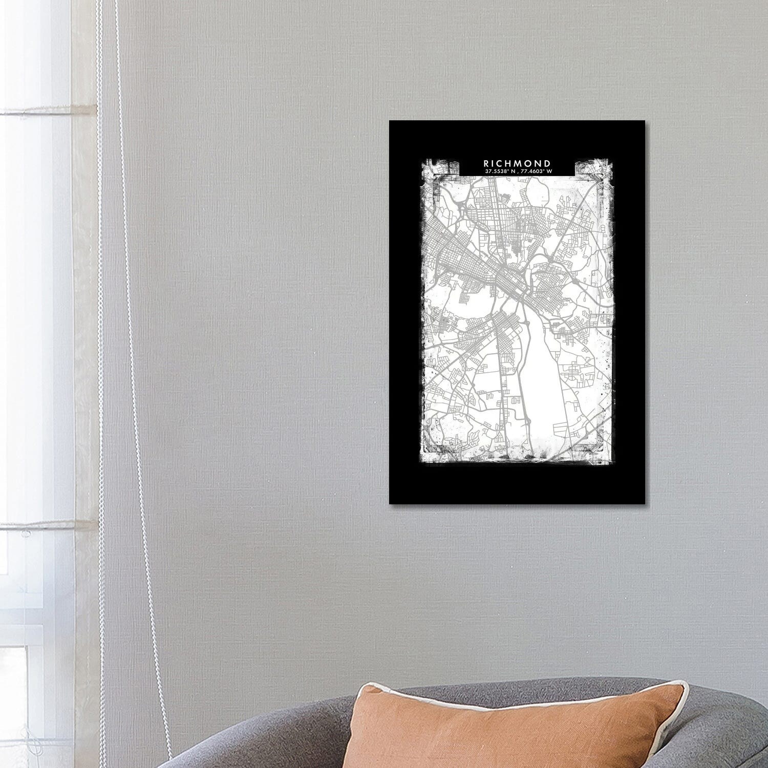 iCanvas "Richmond City Map Black White Grey Style" by WallDecorAddict Canvas Print