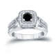 14k Gold 1ct TDW Round Black Diamond Halo Engagement Ring by Auriya