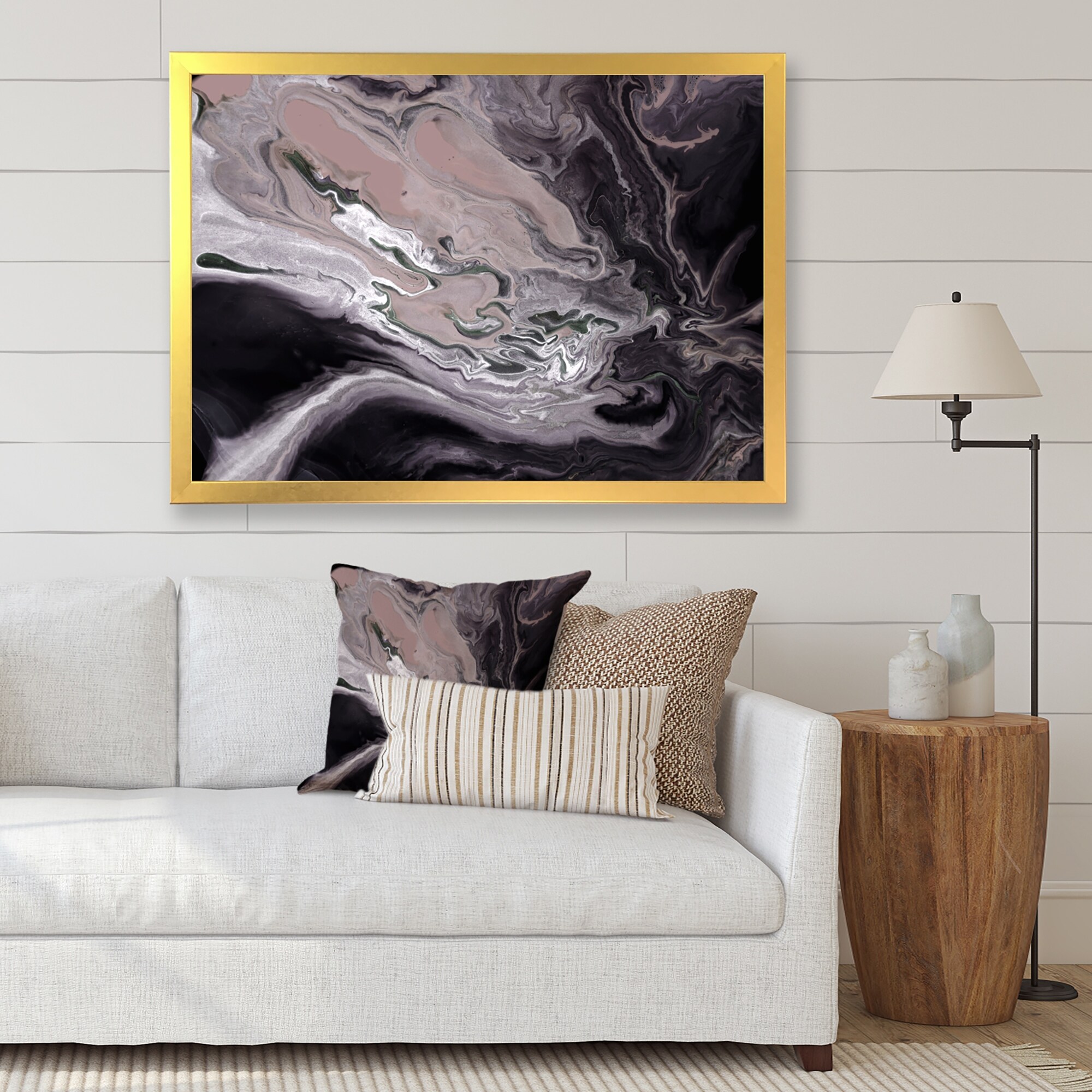 Designart "Luxury Blue And Pink Merble River" Abstract Framed Canvas Wall Decor