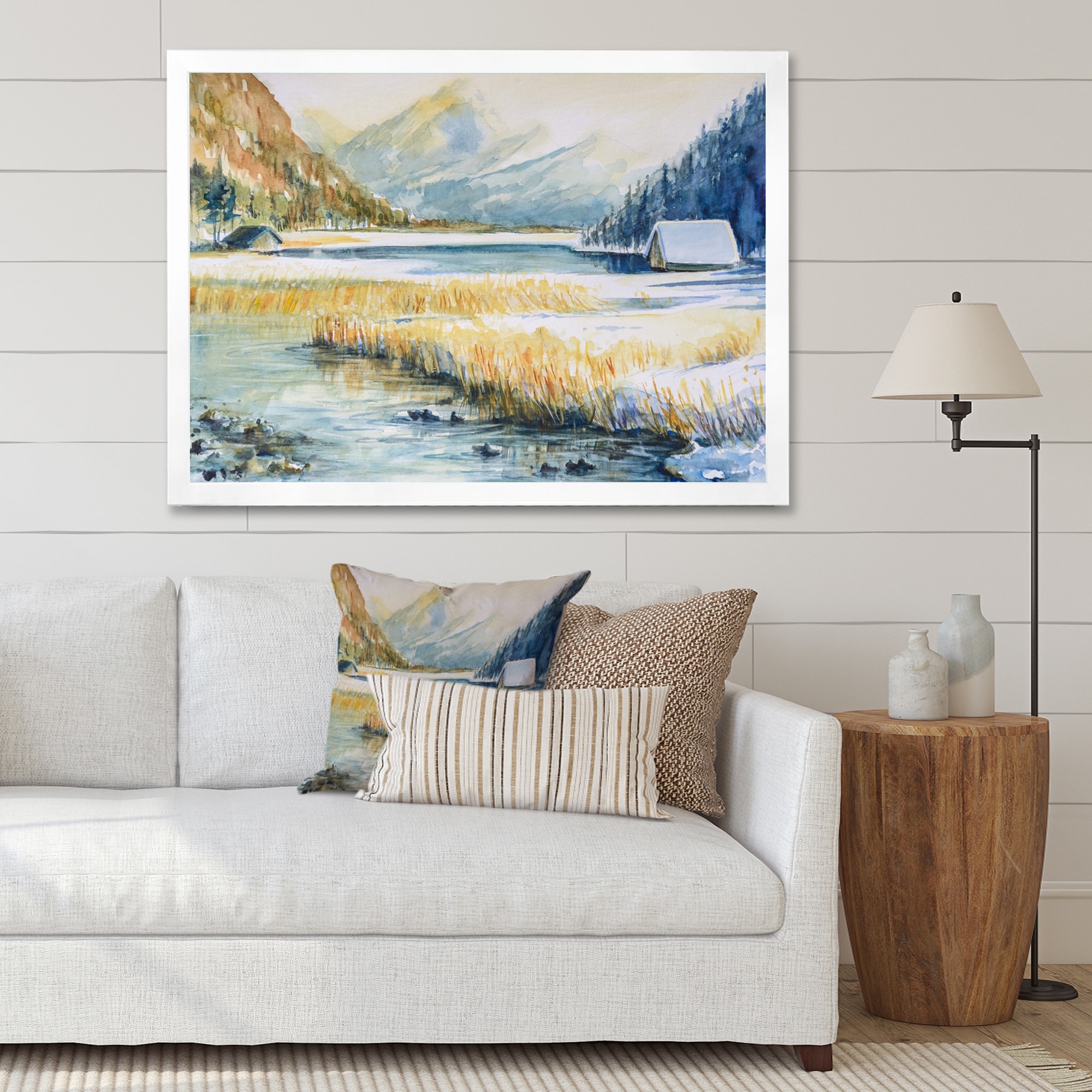 Designart "Impressionist Mountainscape With River III" Farmhouse Framed Canvas Wall Art Print