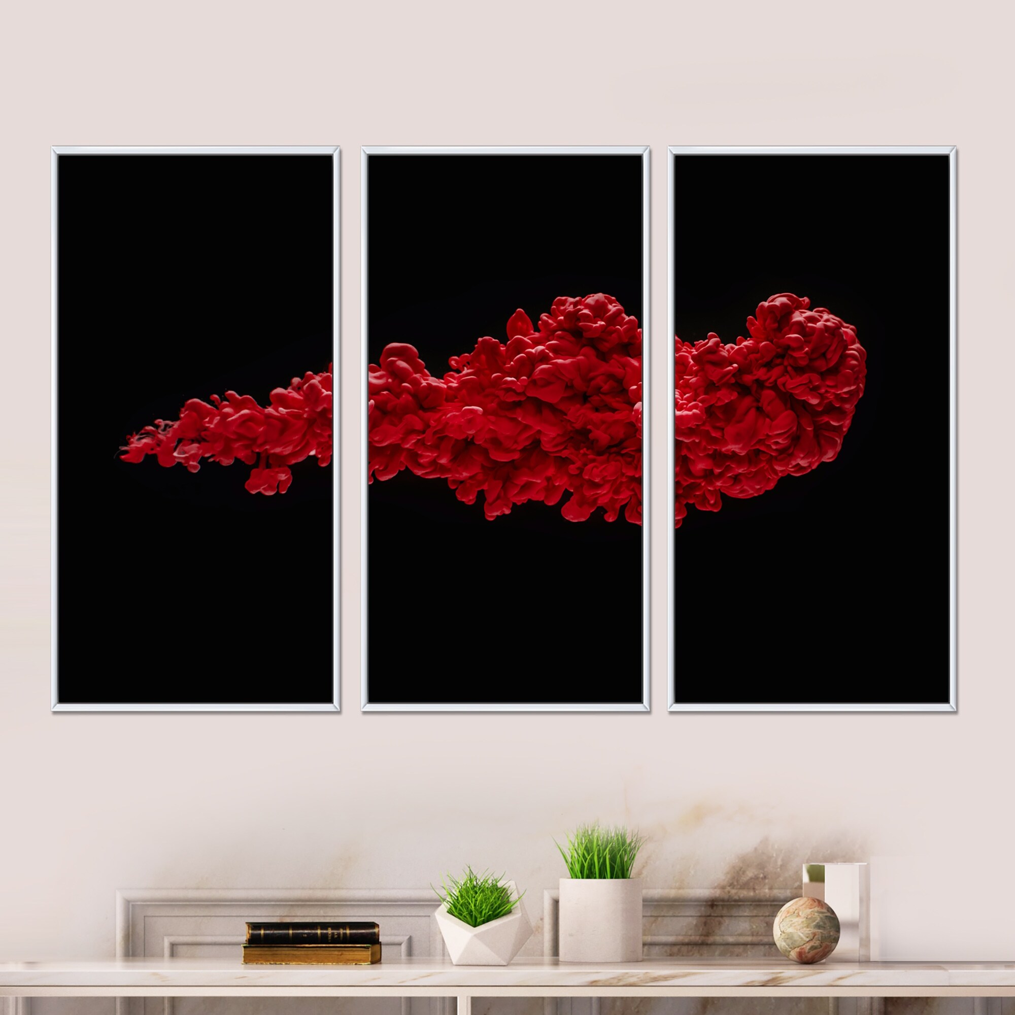 Designart "Red River Or Red Ink Liquid Art" Modern Framed Wall Decor Set of 3 - 4 Colors of Frames
