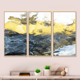 Designart "Yellow Marble River in Liquid Art Universe III" Modern Framed Artwork Set of 3 - 4 Colors of Frames