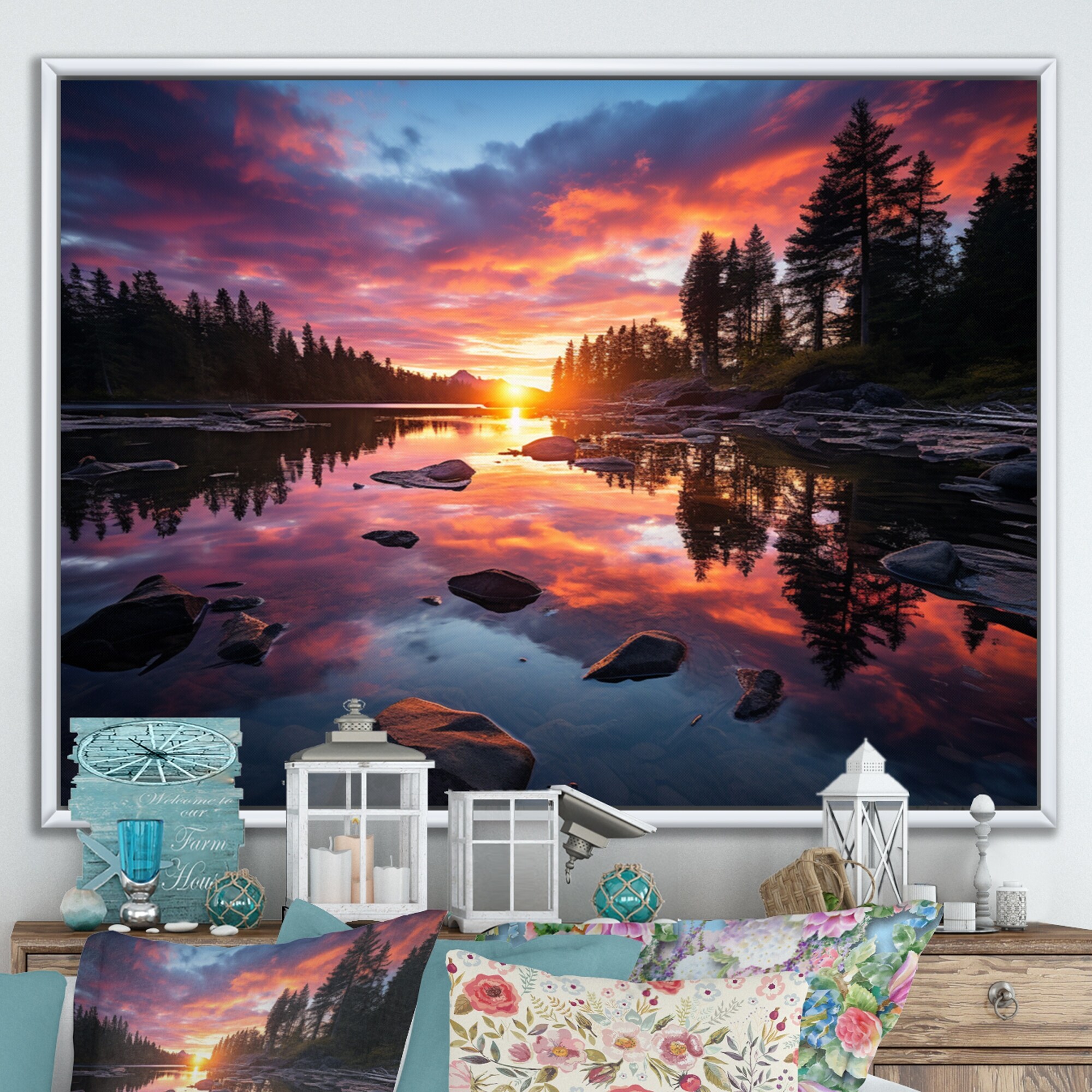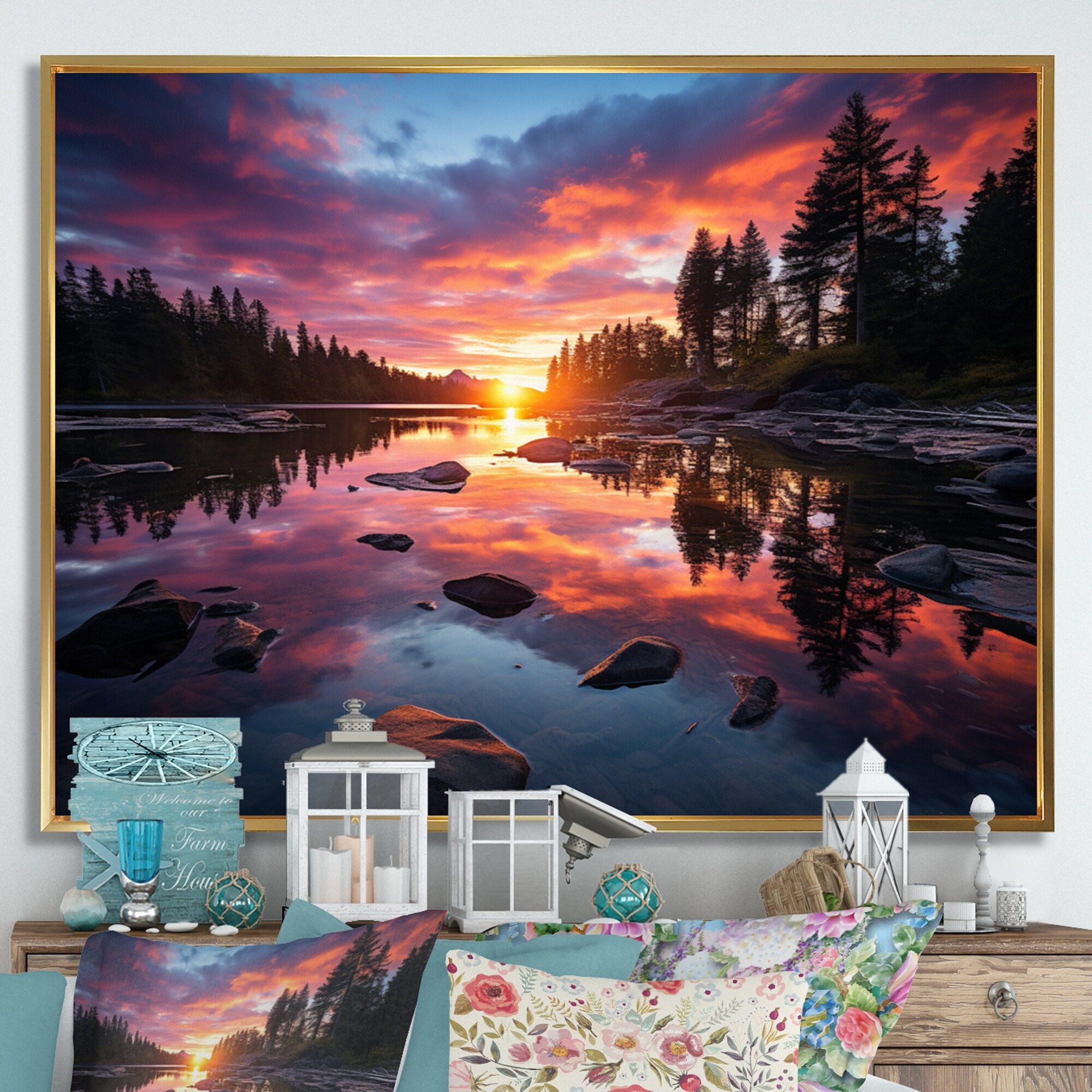 Designart "Colorful Trees At Sunset By the Riverside II" Landscape Forest Framed Canvas Wall Art Print
