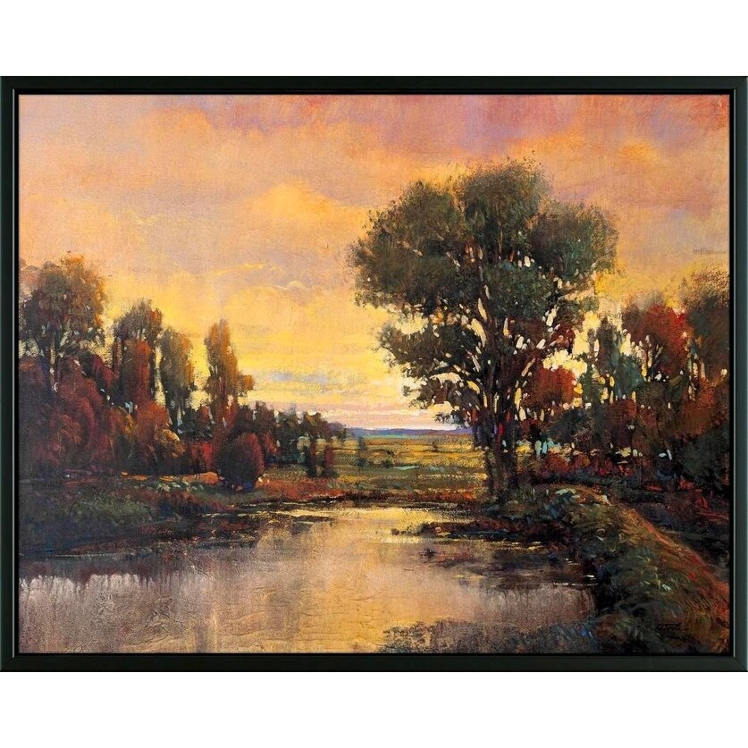 Designart "Green Trees By the Riverside During Evenign Glow" Traditional Framed Art Print