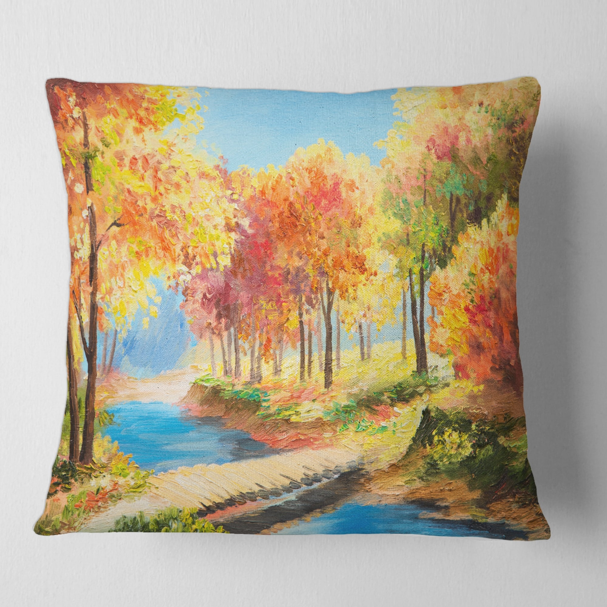 Designart 'Yellow and Orange Trees By the Riverside' Lake House Printed Throw Pillow