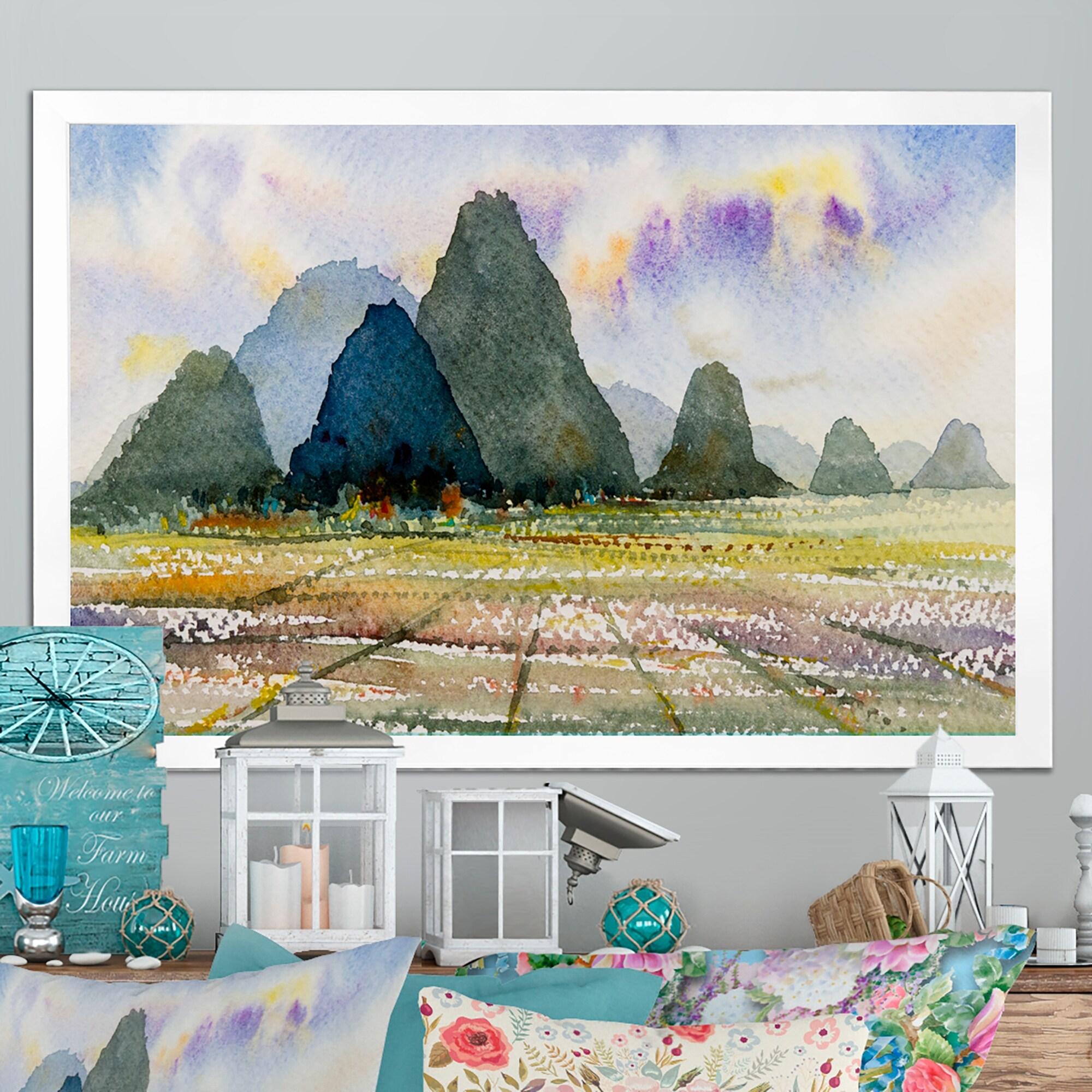 Designart "Mountain Viewed From the Riverside" Traditional Framed artwork