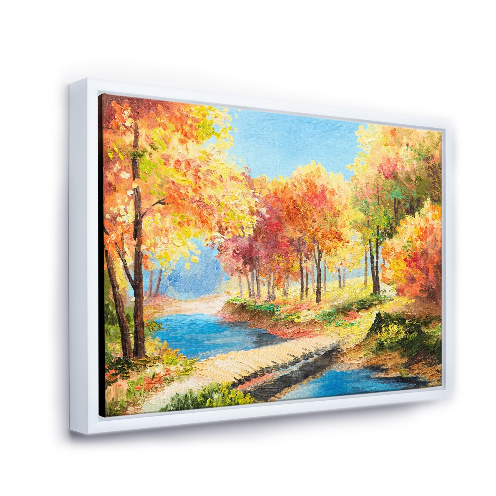 Designart "Yellow and Orange Trees By the Riverside" Lake House Framed Canvas Wall Art Print