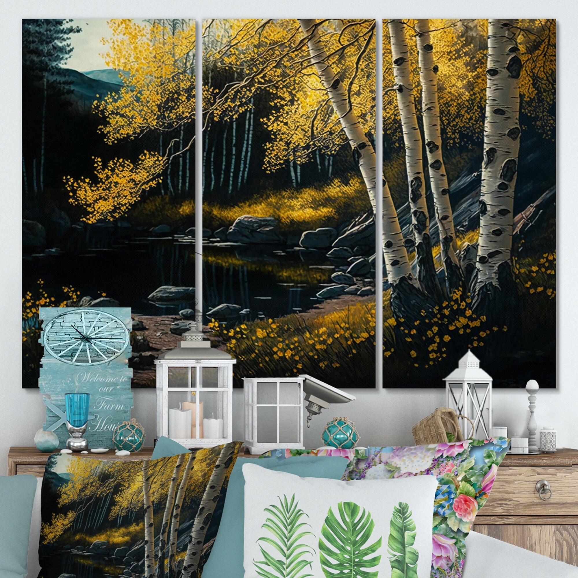 Designart "Yellow Birches By the Riverside II" Landscape Forest Canvas Wall Art