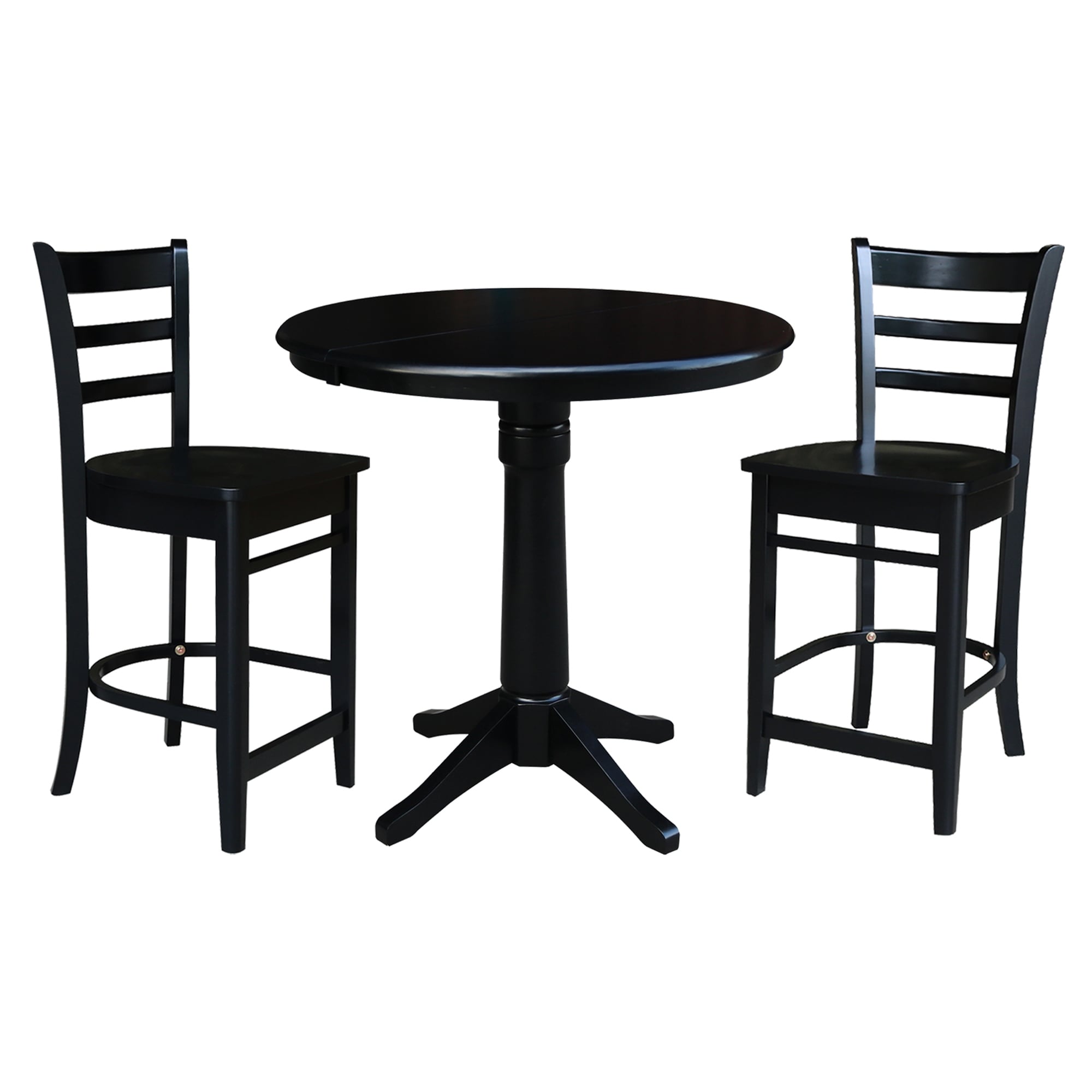 36" Round Extension Dining Table with 2 Counter Height Stools