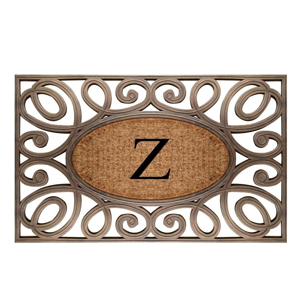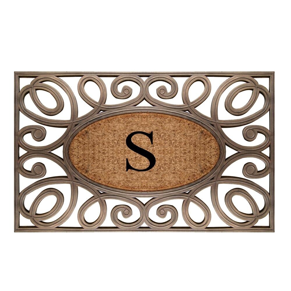 A1HC Rubber and Coir Paisley Border Myla Bronze Monogrammed Doormat, 18"X48"