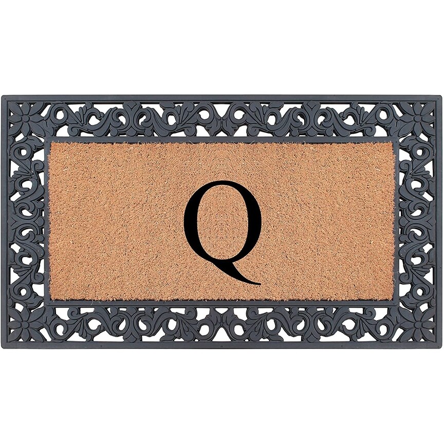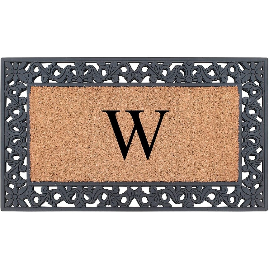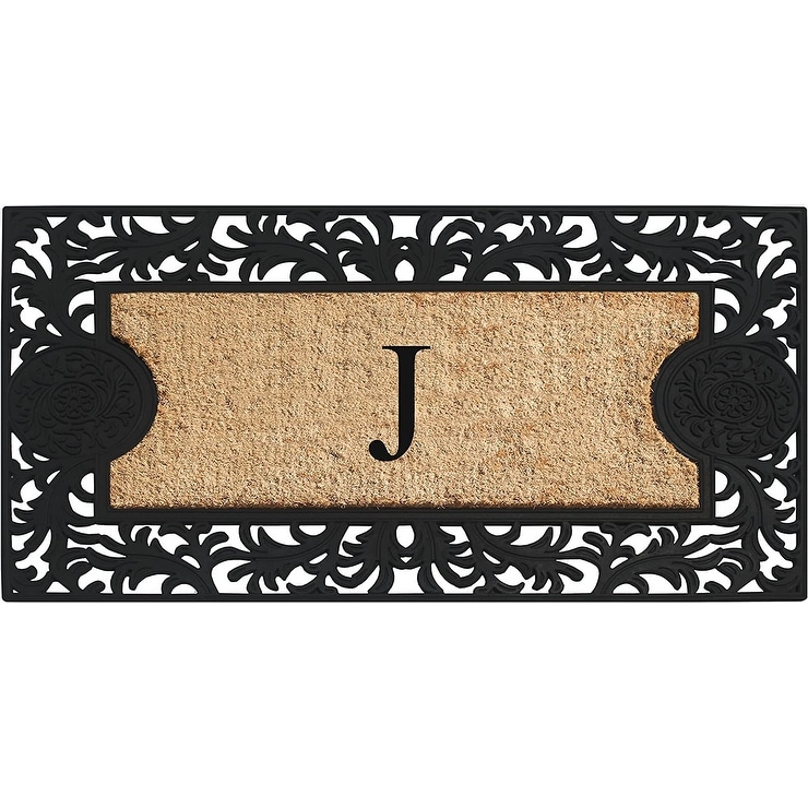 A1HC Floral Border Rubber and Coir Large Outdoor Durable Monogrammed Doormat, Black - 23" X 38"