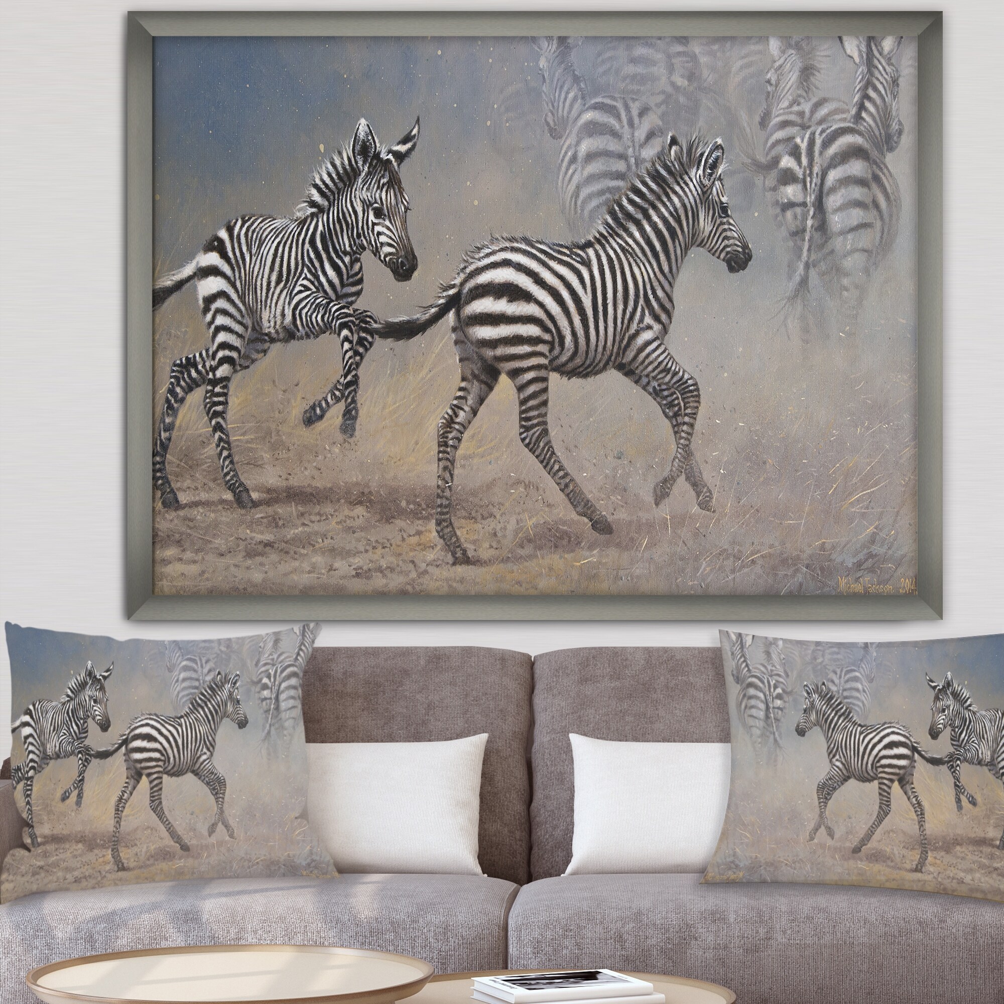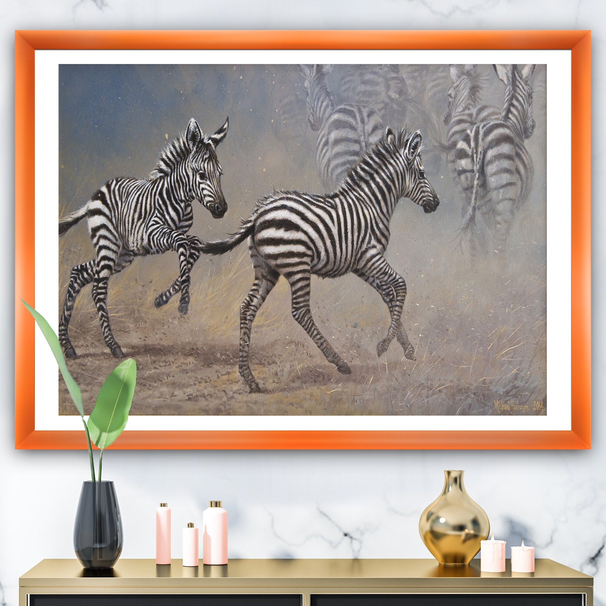 Designart "African Wild Zebras Running" Cottage Framed Art Print