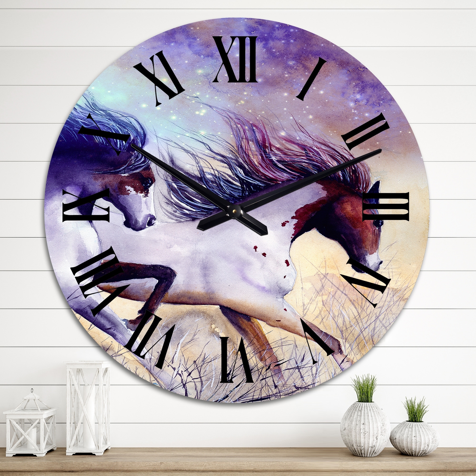 Designart 'Two Running Horses With Clouds of Dust' Traditional wall clock