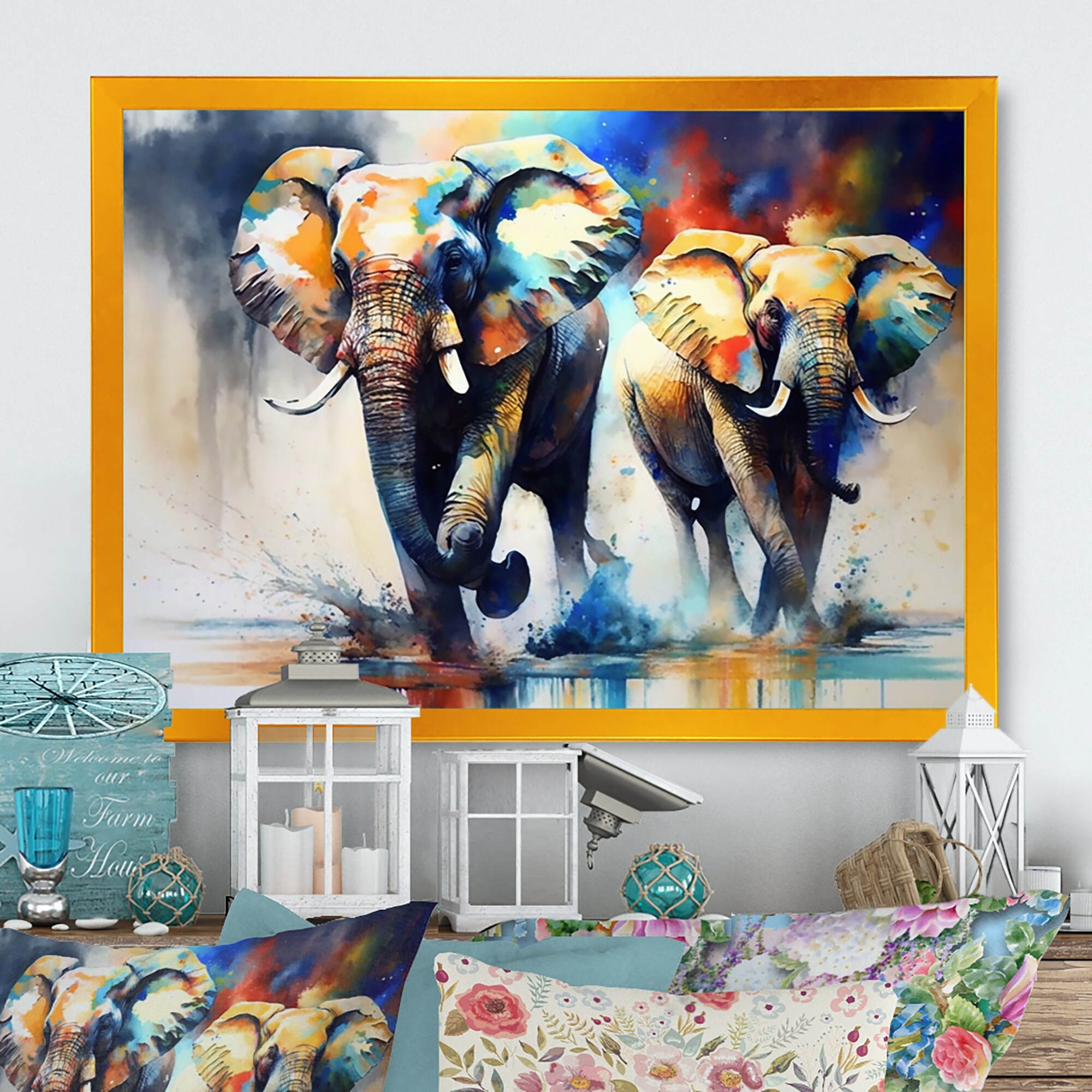 Designart "Elephants Running I" Animals Framed Art Print