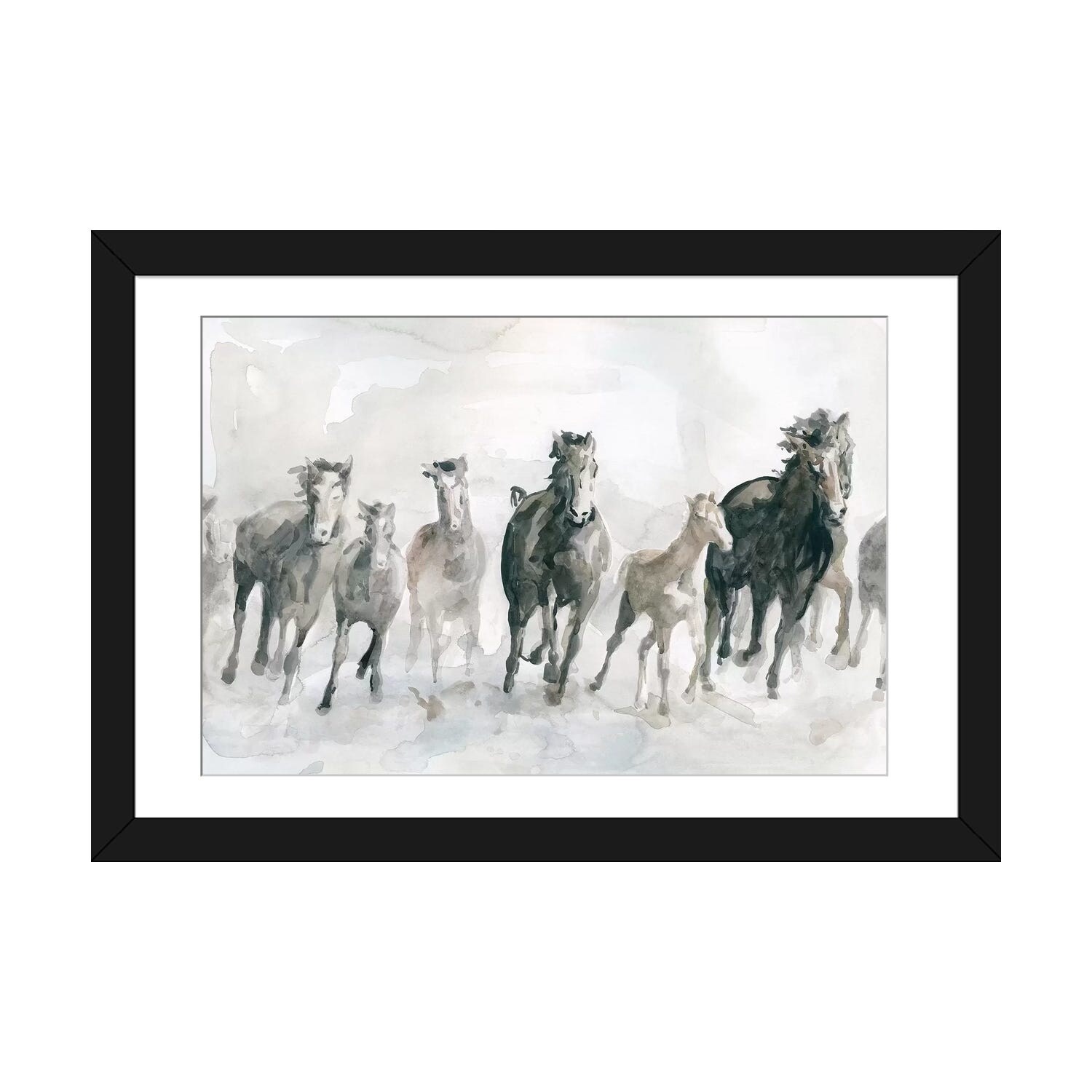 "Wild horses running" Black Float Frame Canvas Art