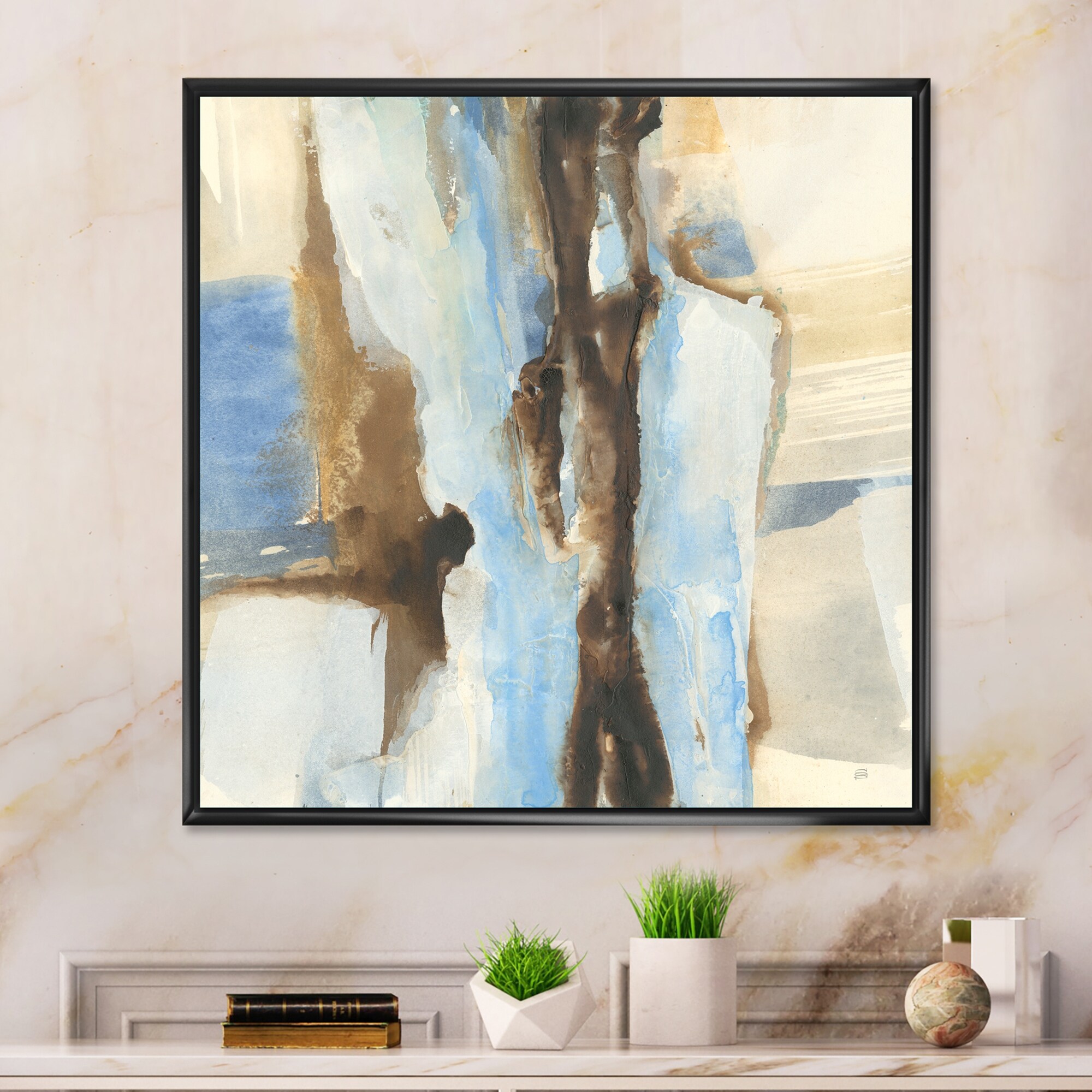 Designart "River Run I" Modern & Contemporary Framed Canvas