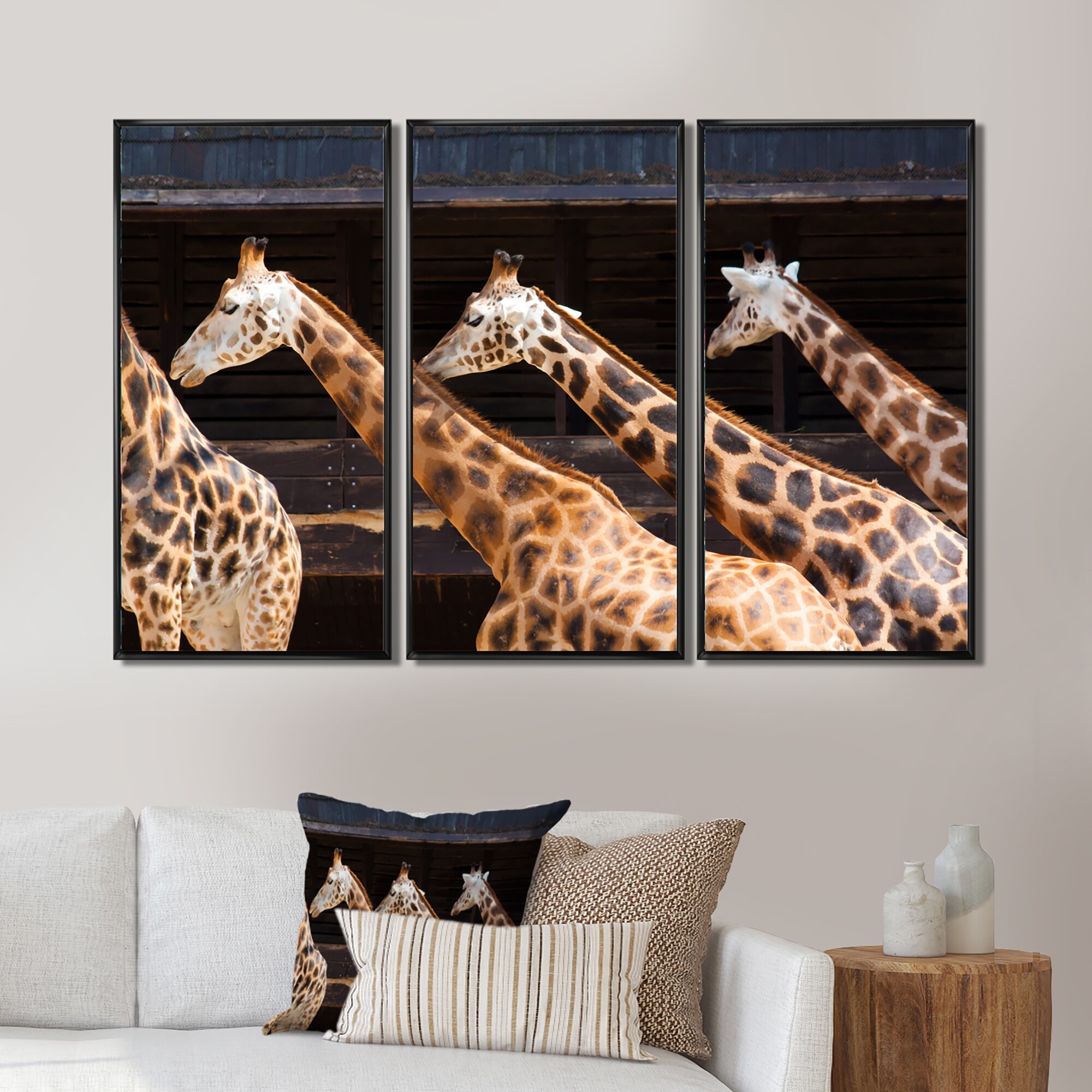 Designart "Three Giraffes Running" Farmhouse Framed Art Set of 3 - 4 Colors of Frames