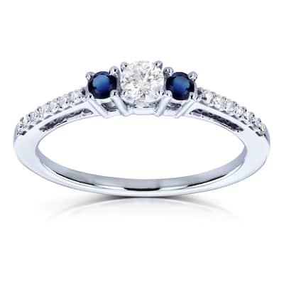 Annello by Kobelli 10k White Gold 1/4ct TGW Three Stone Diamond and Sapphire Promise Ring