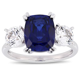 Miadora 10k White Gold Created Blue and Created White Sapphire 3-Stone Engagement Ring