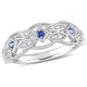 Miadora 10k White Gold Sapphire and 1/8ct TDW Diamond Vintage-Inspired Band