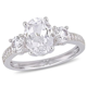 Miadora 10k White Gold Created White Sapphire & Diamond 3-Stone Engagement Ring