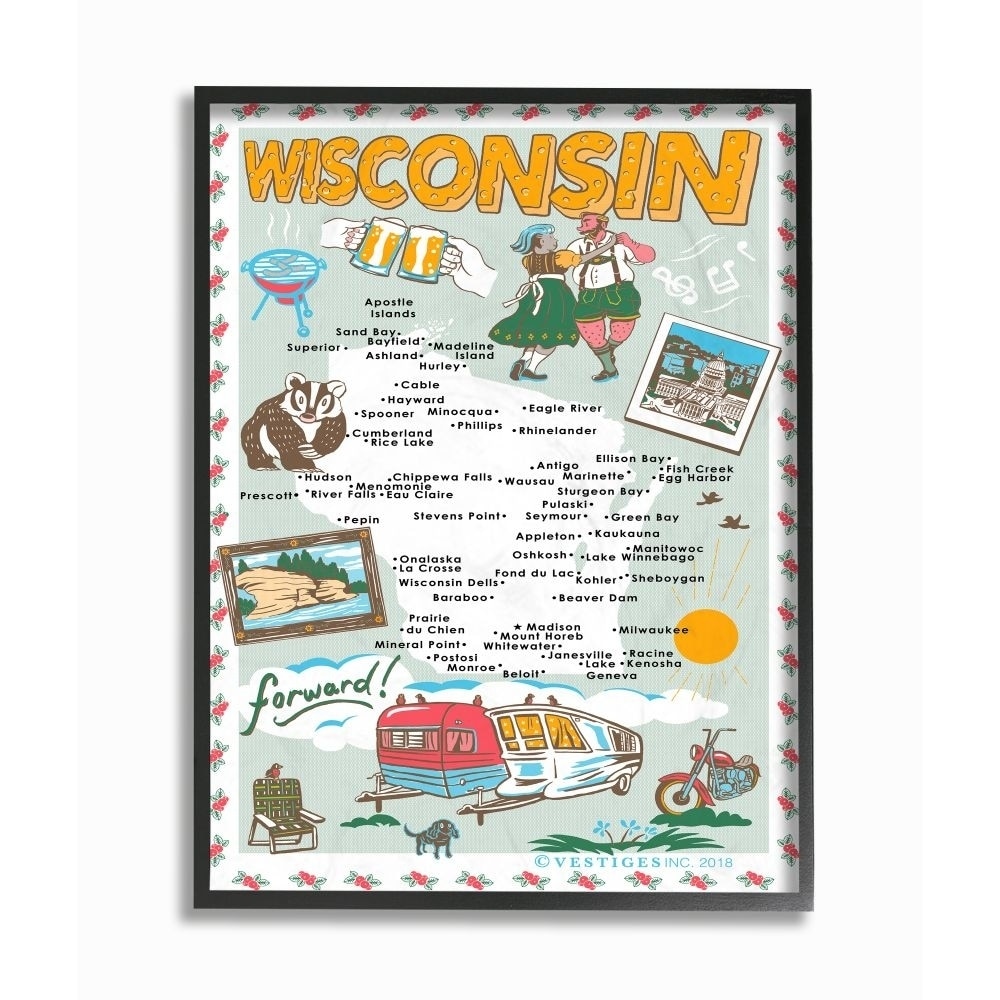 Stupell Wisconsin Pale Blue Illustrated Scenic Map Poster Framed Art, 11x14, Design By Artist Vestiges