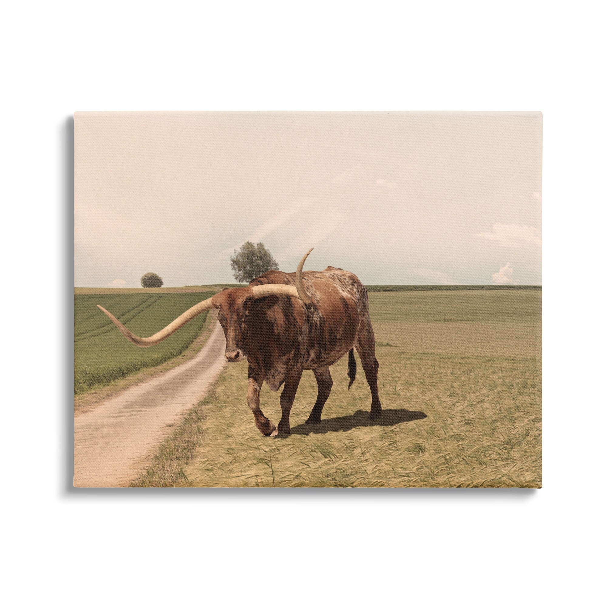 Stupell Industries Longhorn Cattle Grazing Scenic Countryside Landscape Canvas Wall Art, Design by Marcus Prime