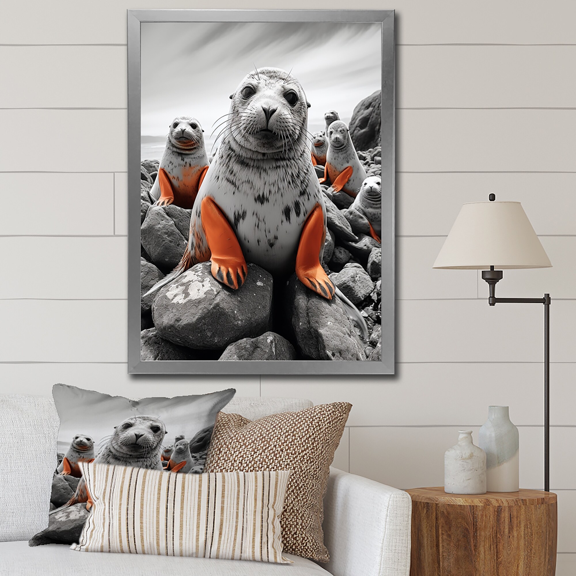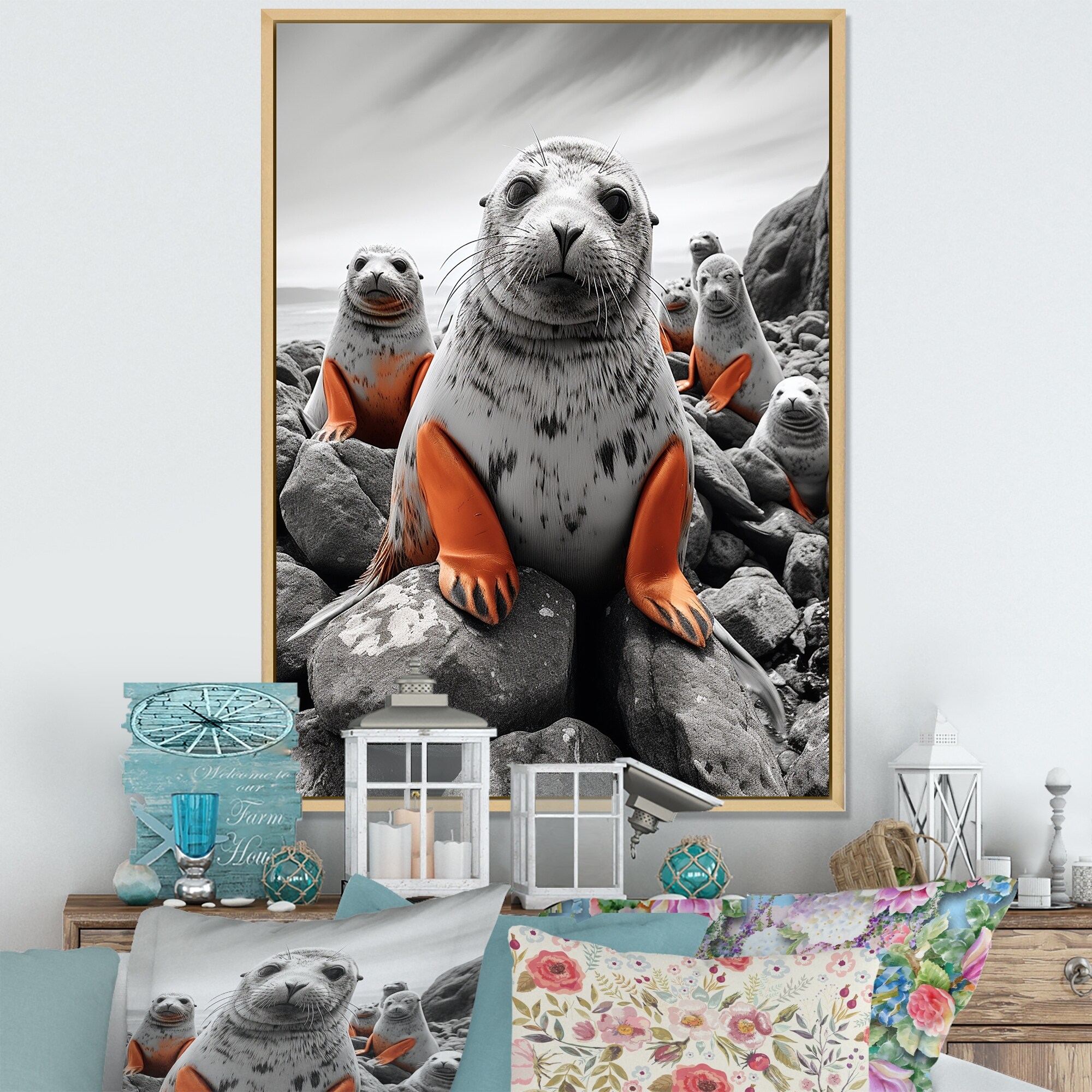 Designart "Grey Coral Seal Silent Guardians" Marine Animals Framed Canvas Print