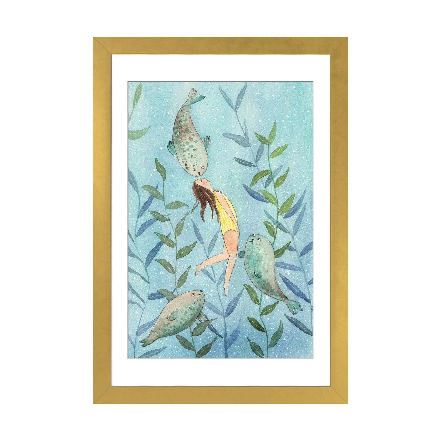 Designart "Seal In Water" Global Framed Canvas Wall Decor