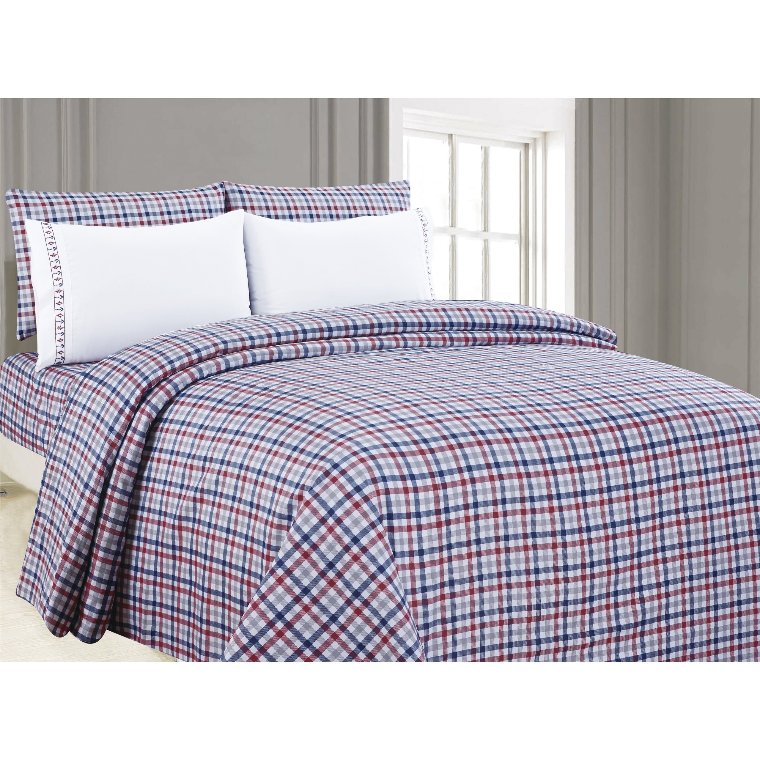 Becky Cameron Plaid 4 Piece 100% Cotton Brushed Flannel Deep Pocket Bed Sheet Set