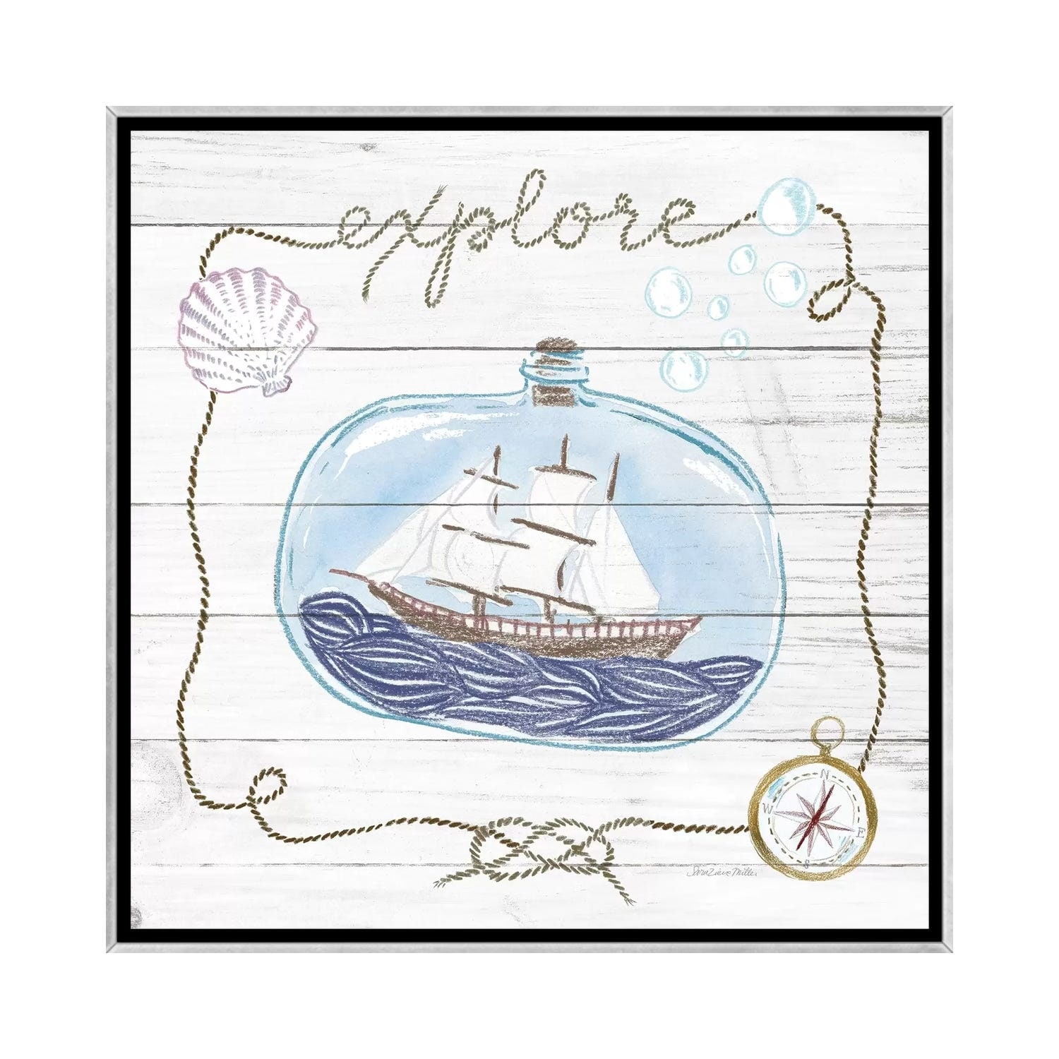 iCanvas "Ship In A Bottle Explore Shiplap" by Sara Zieve Miller Framed