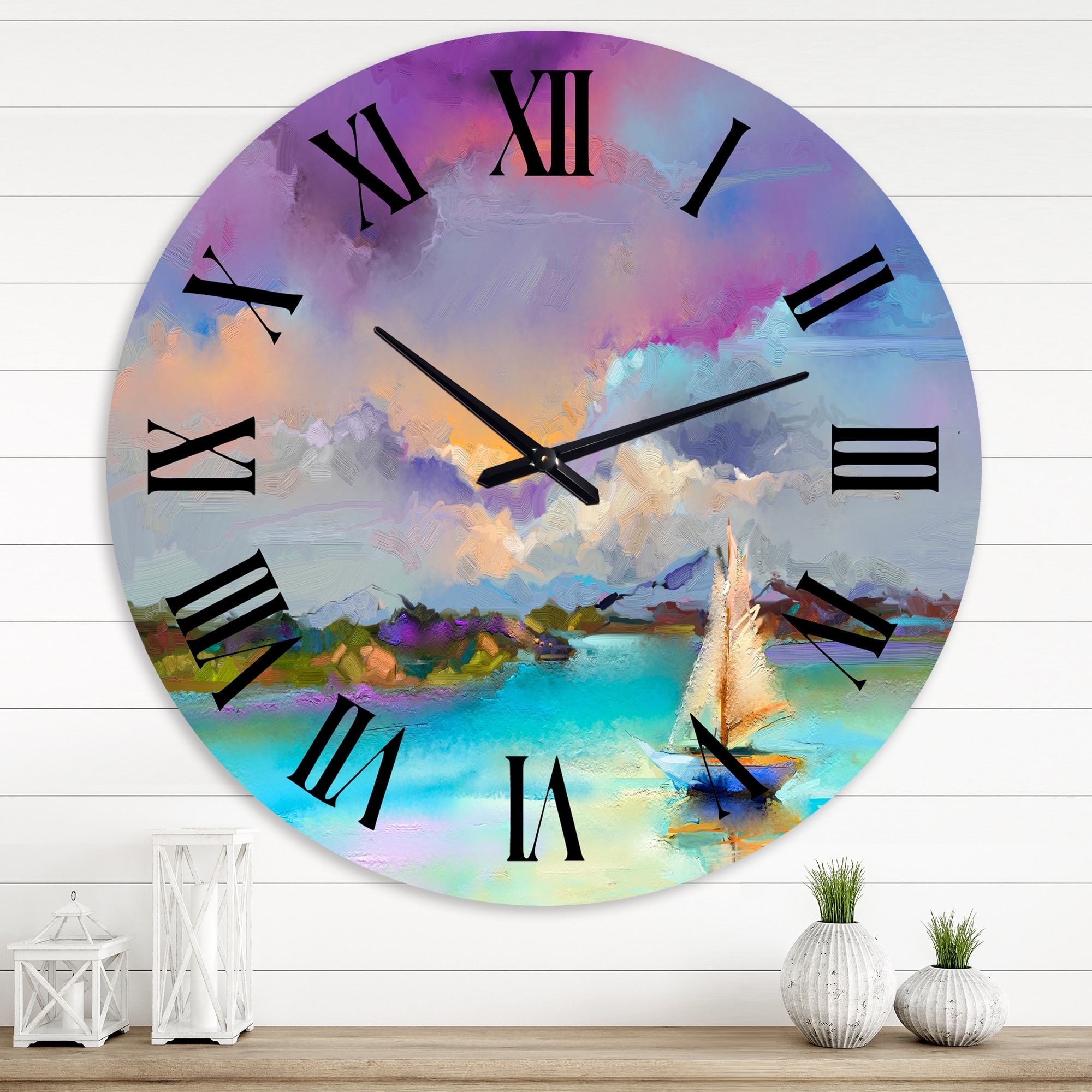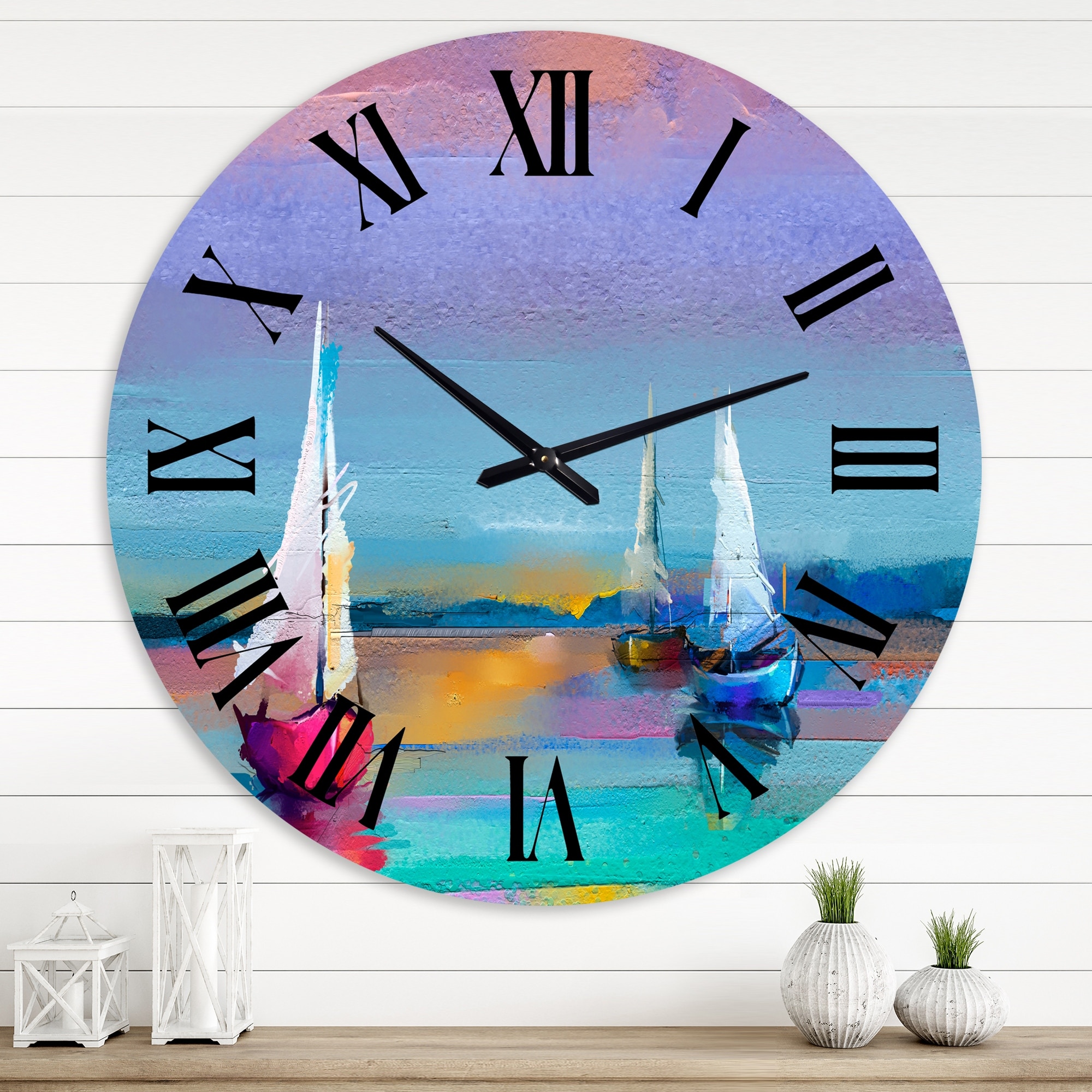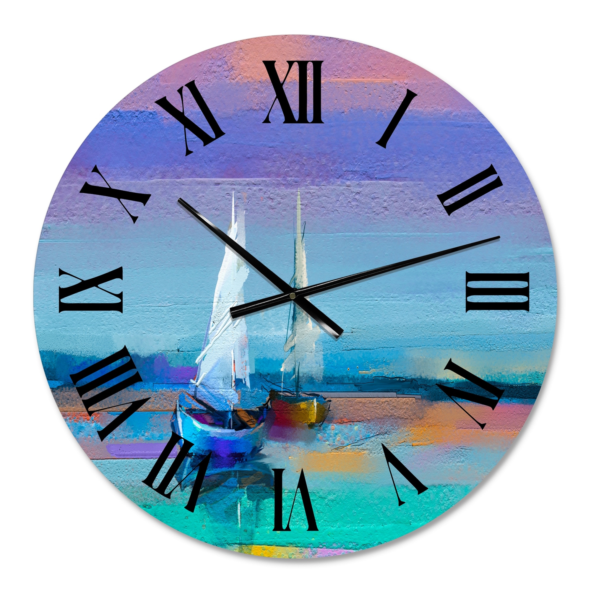 Designart 'Impressionist Seascape With Little Ships I' Nautical & Coastal wall clock