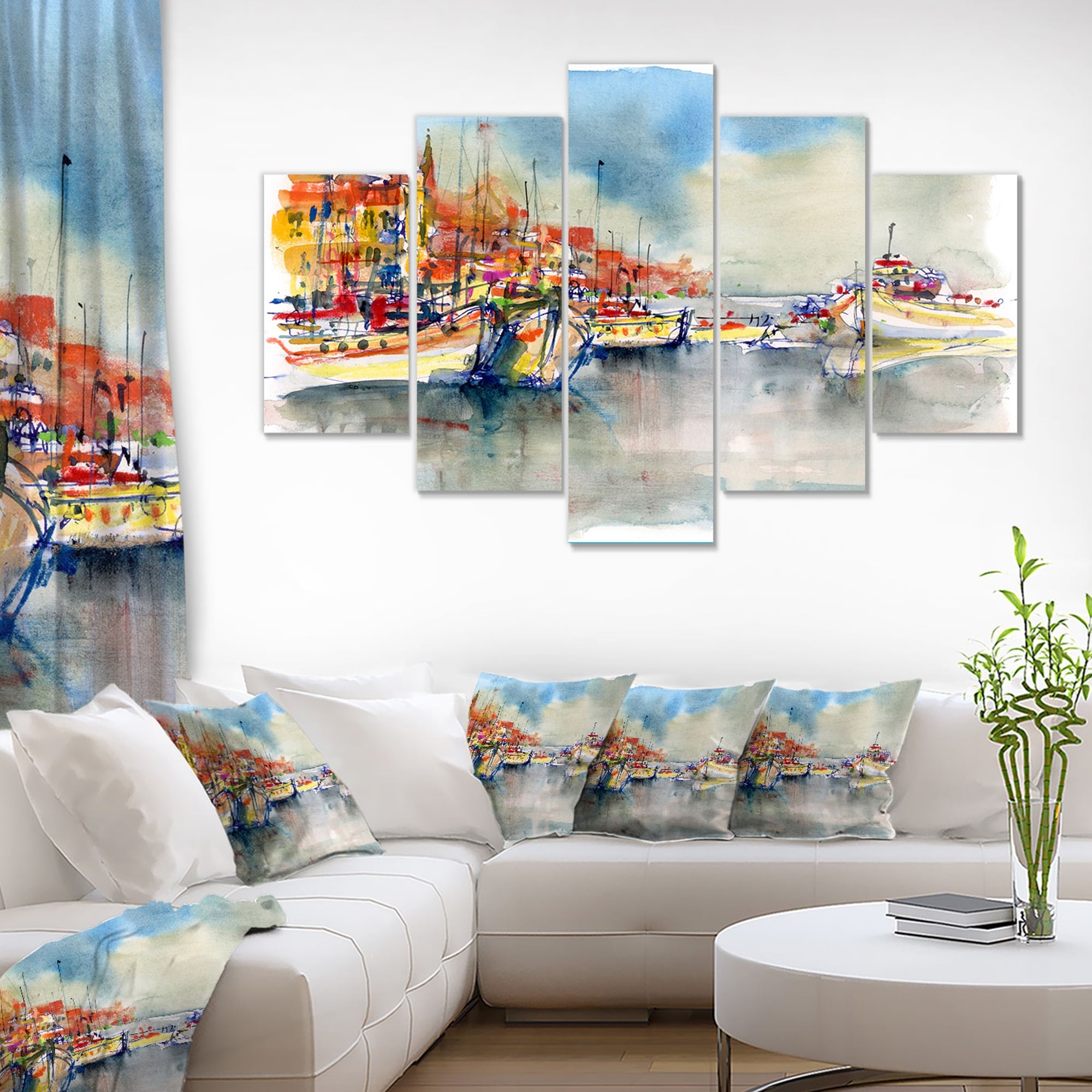 Designart "City and ships in the harbor" Sea & Shore Print on Wrapped Canvas set