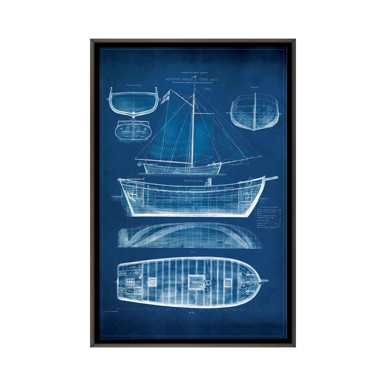 iCanvas "Antique Ship Blueprint II" by Vision Studio Framed
