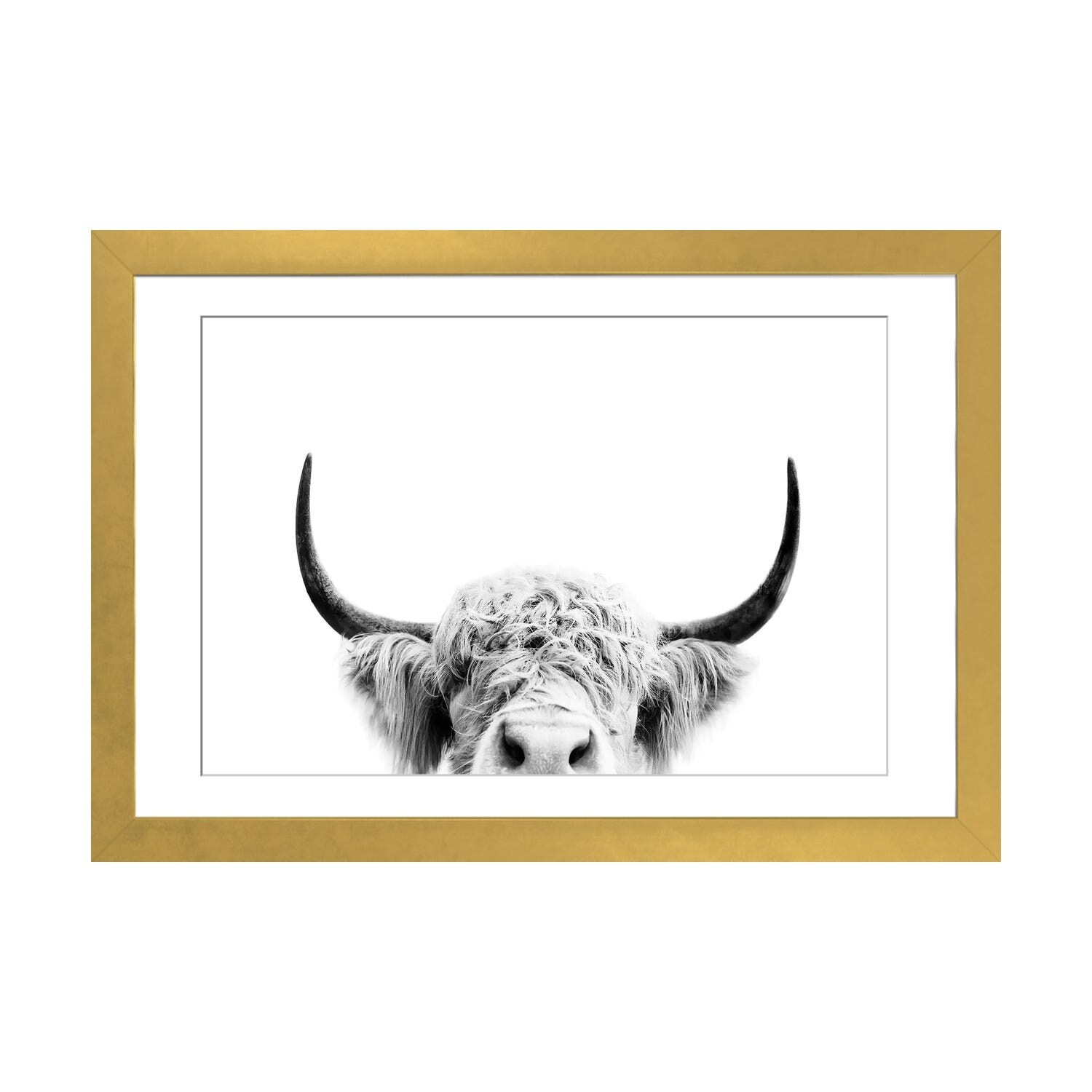 iCanvas "Peeking Cow II" by Sisi & Seb Framed