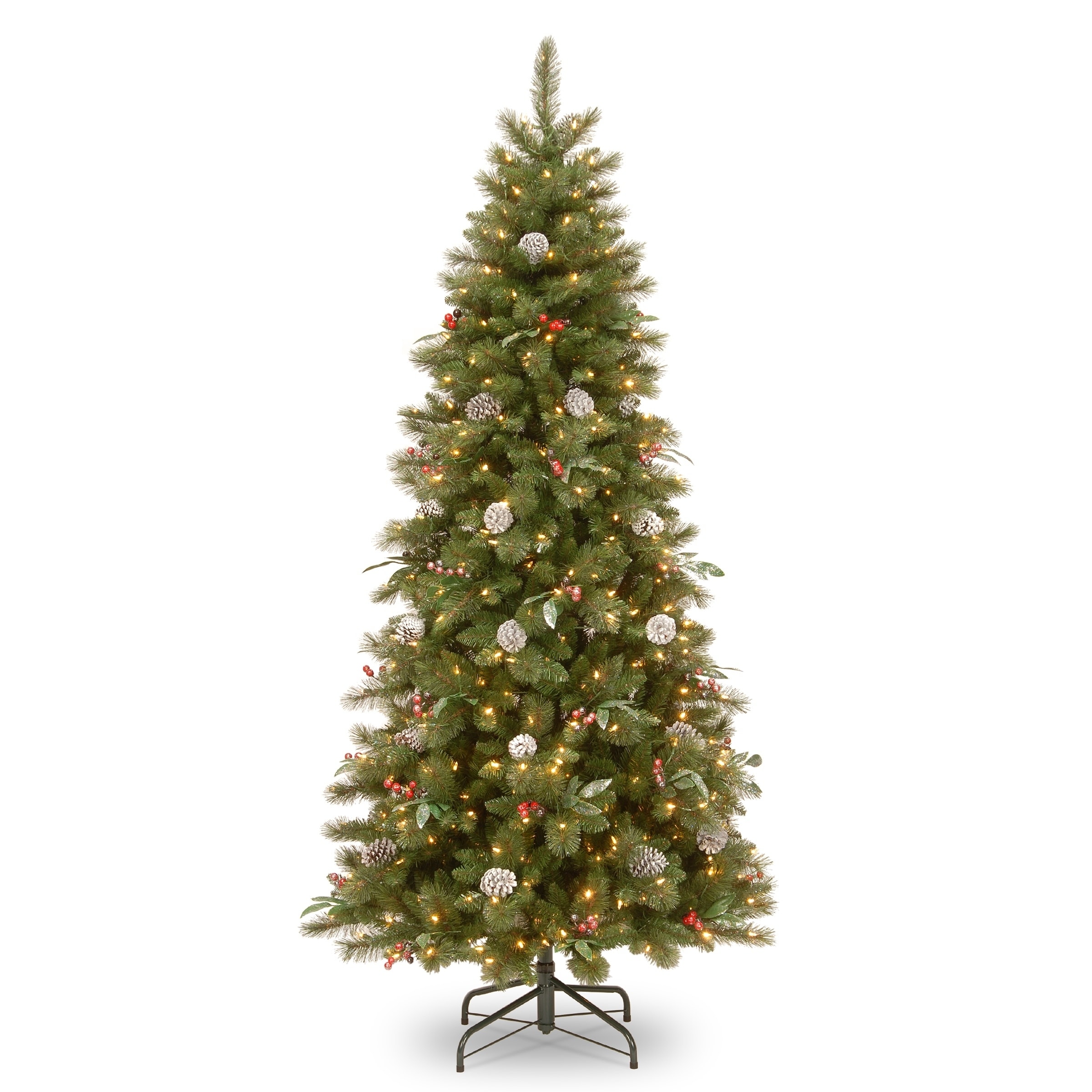 7.5 ft.Frosted Pine Berry Slim Hinged Tree with Clear Lights