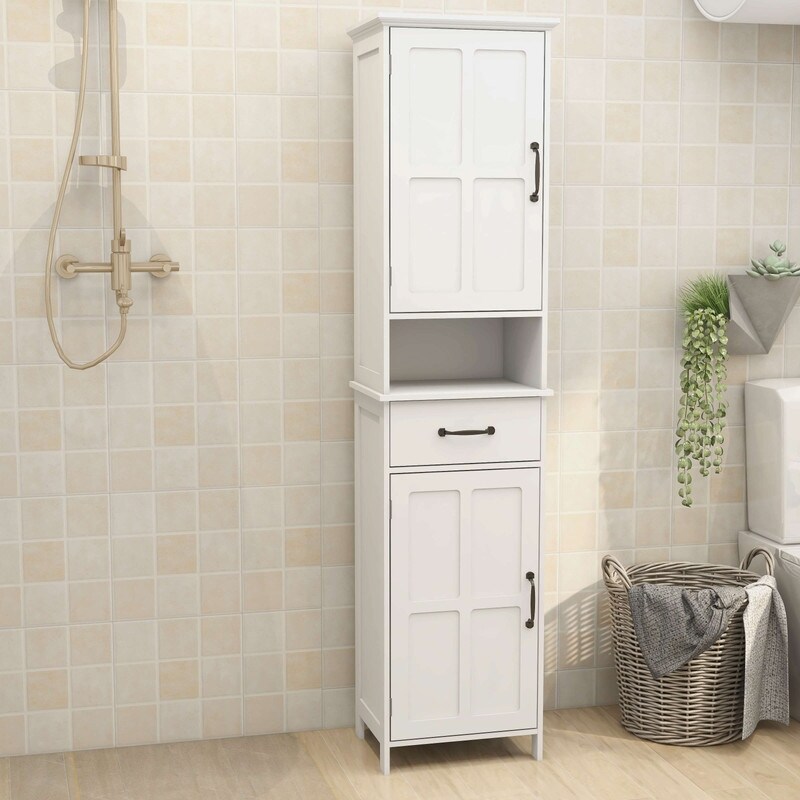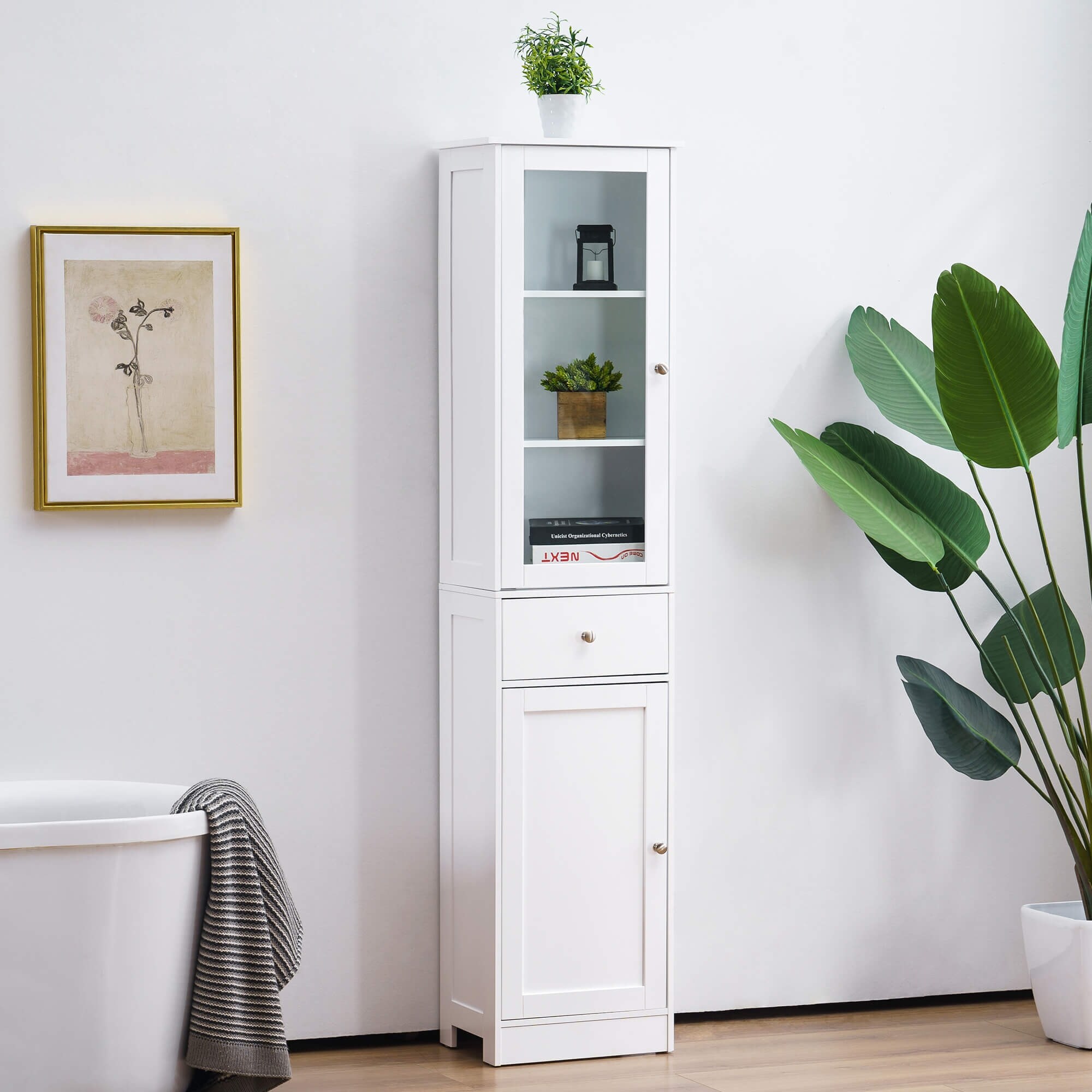 Slim Tall Storage Cabinet with Drawer, 2 Cabinets and Metal Knobs, Cabinets with Acrylic Door and Adjustable Shelf