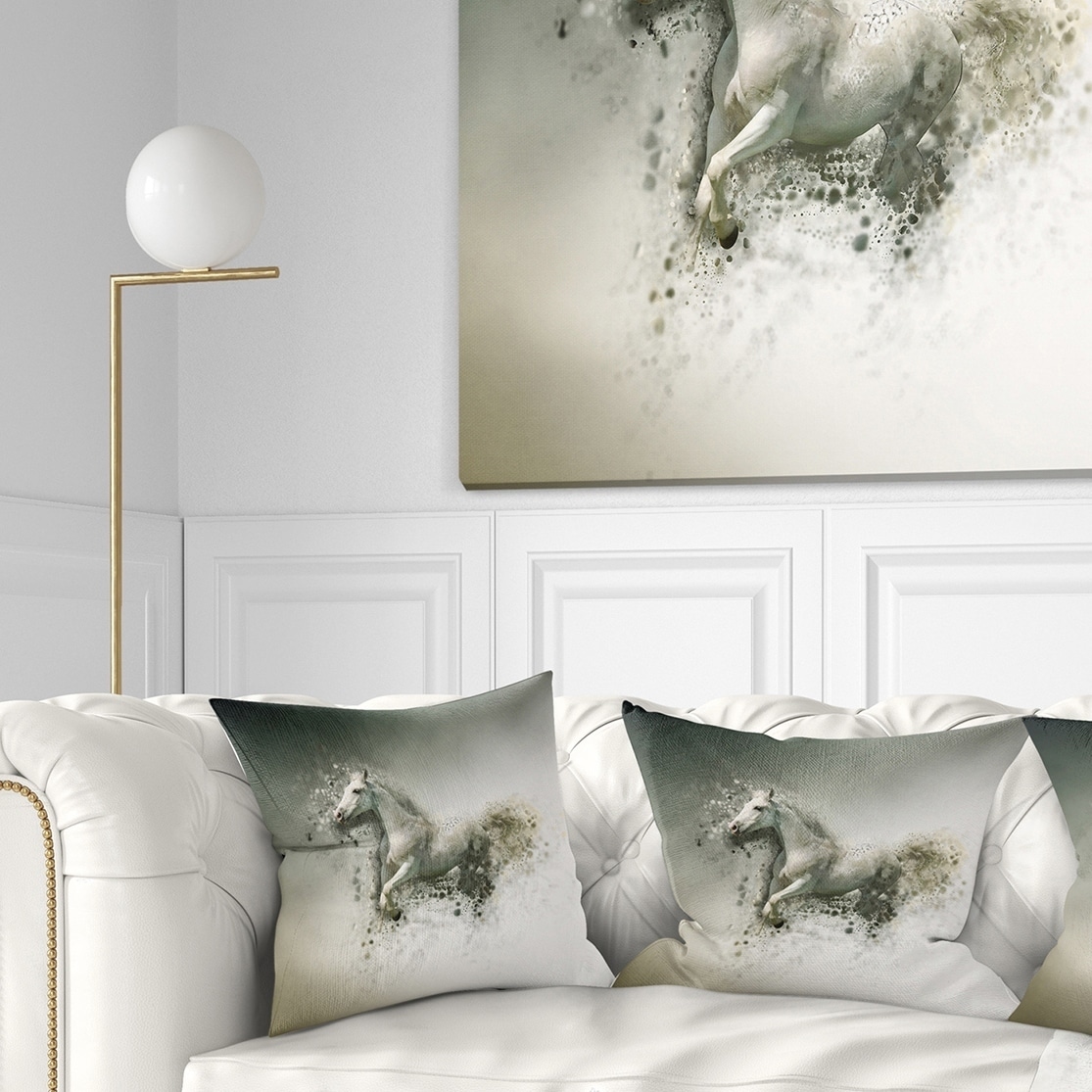 Designart 'Smart White Horse Running' Animal Throw Pillow