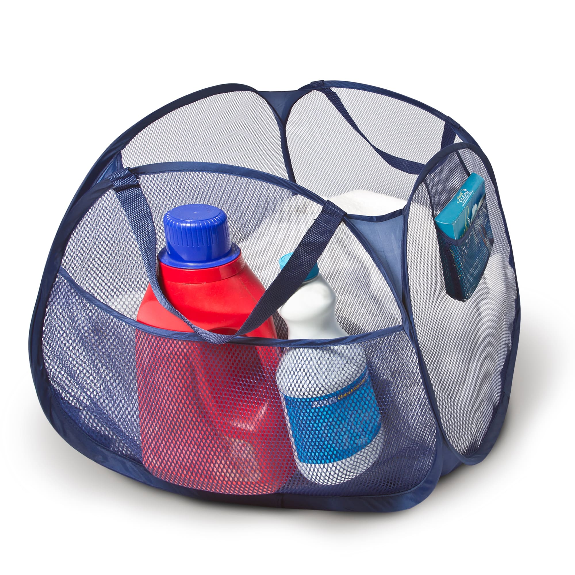 Smart Design Deluxe Mesh Pop Up Laundry Basket Hamper - Blue