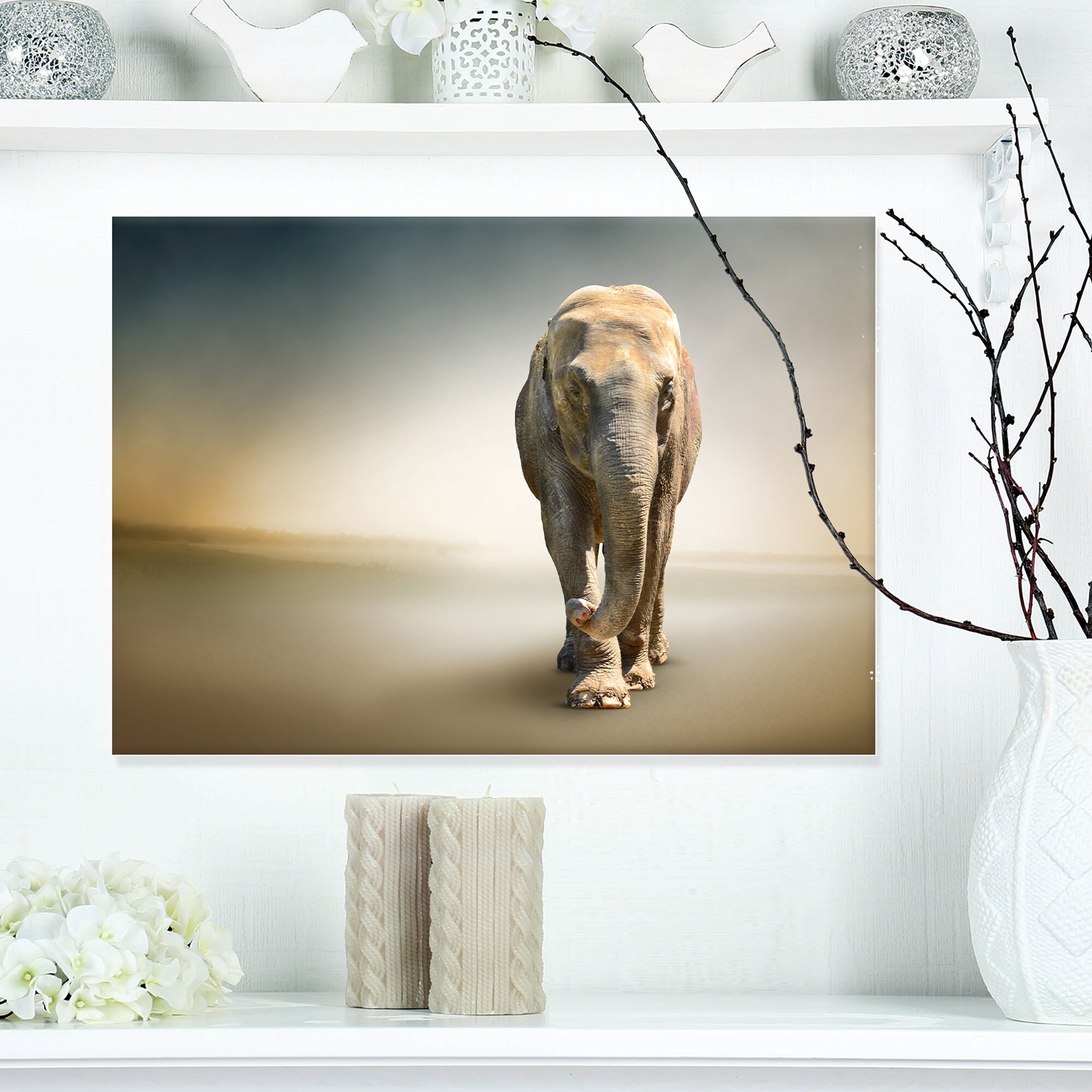 Designart "Smart Elephant Walking" Large Animal Art on Canvas