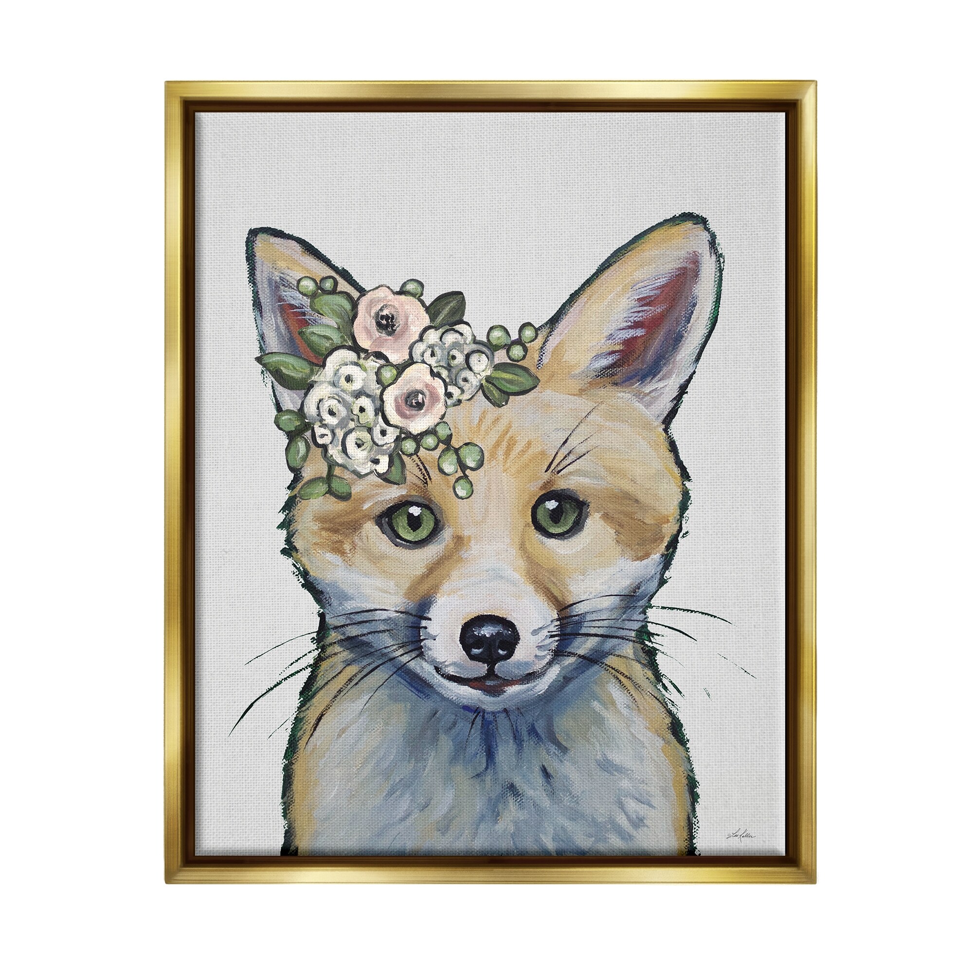 Stupell Industries Smiling Fox Floral Blossom Garland Framed Floater Canvas Wall Art by Lee Keller