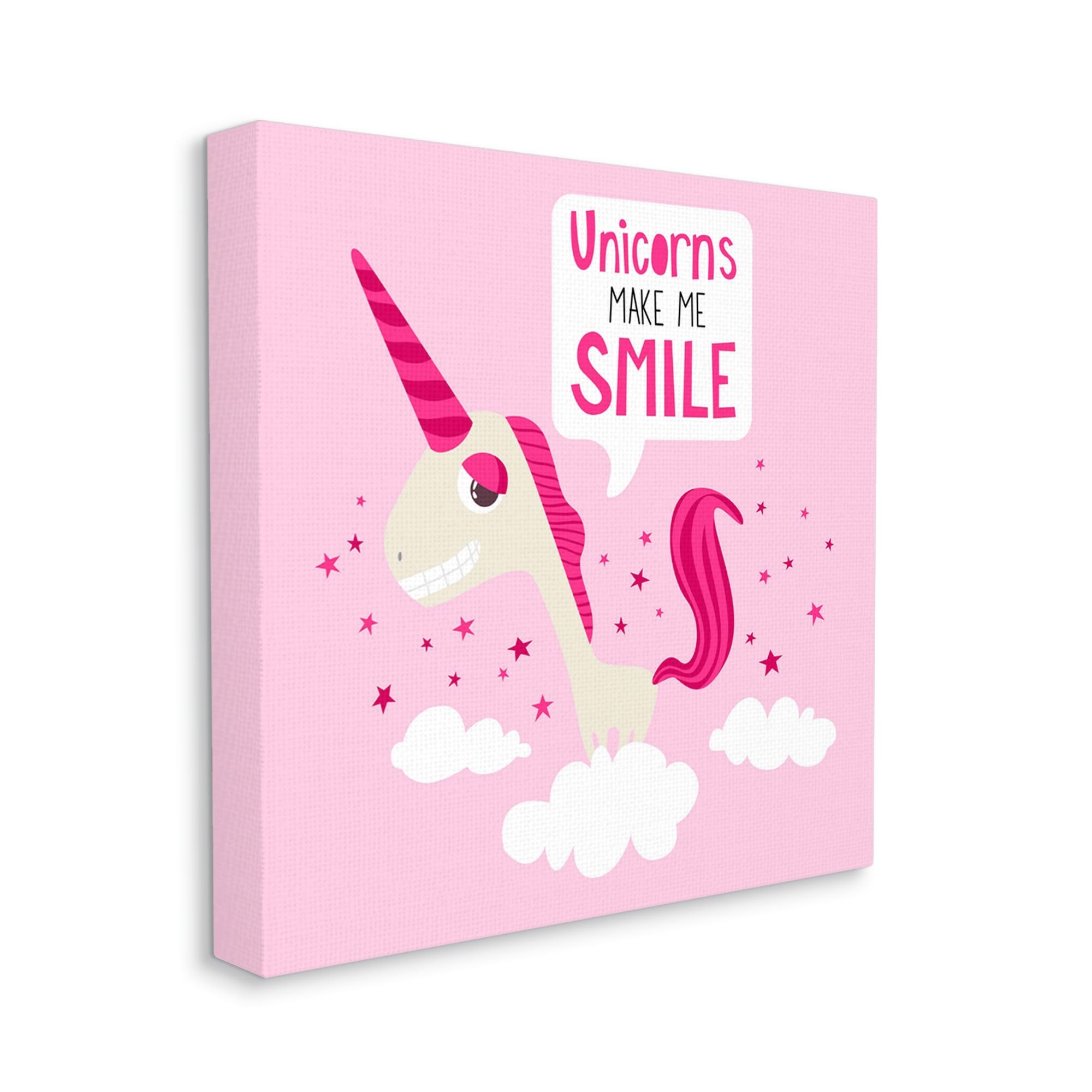 Stupell Industries Unicorns Make Me Smile Phrase Happy Pink Unicorn Canvas Wall Art
